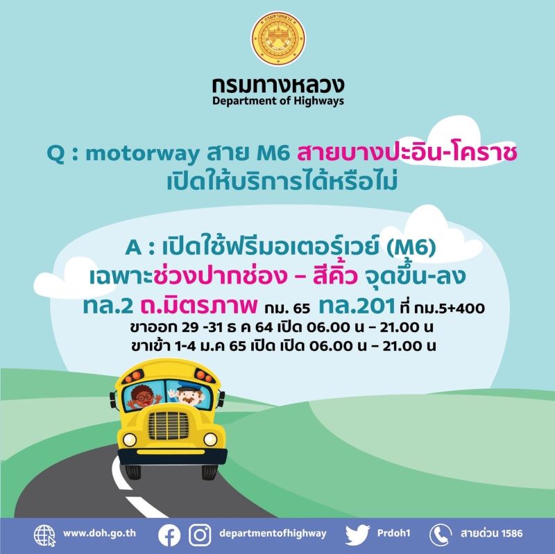 กรมทางหลวง อำนวยความสะดวกและปลอดภัยช่วงเทศกาลปีใหม่ 2565 พร้อมเปิดบริการช่วยเหลือฉุกเฉินผ่านไลน์ตลอด 24 ชม. เพื่อรองรับการเดินทางของประชาชน