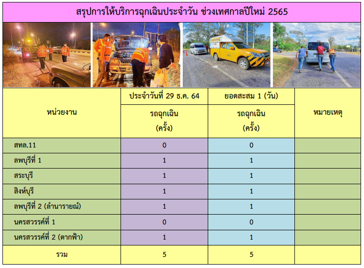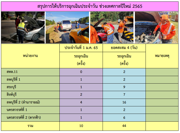 การให้บริการช่วยเหลือฉุกเฉินบนทางหลวงเทศกาลปีใหม่ 2565(4ม.ค.65)