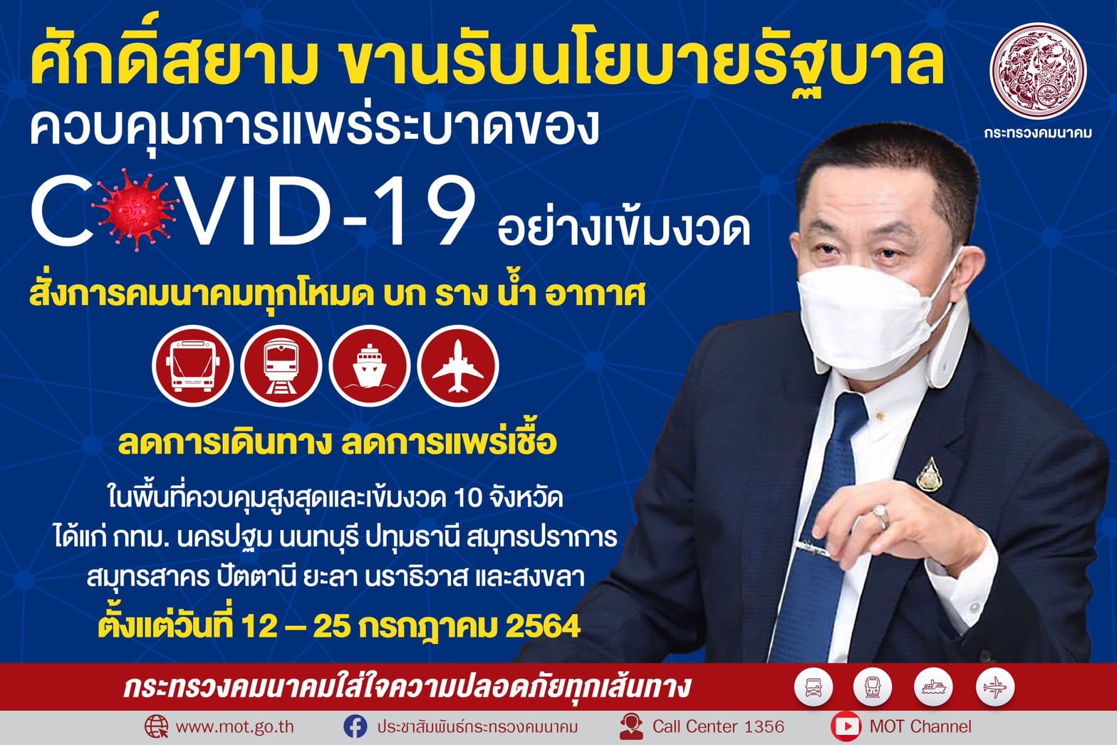 ศักดิ์สยาม ขานรับนโยบายรัฐบาล ควบคุมการแพร่ระบาดของ Covid-19