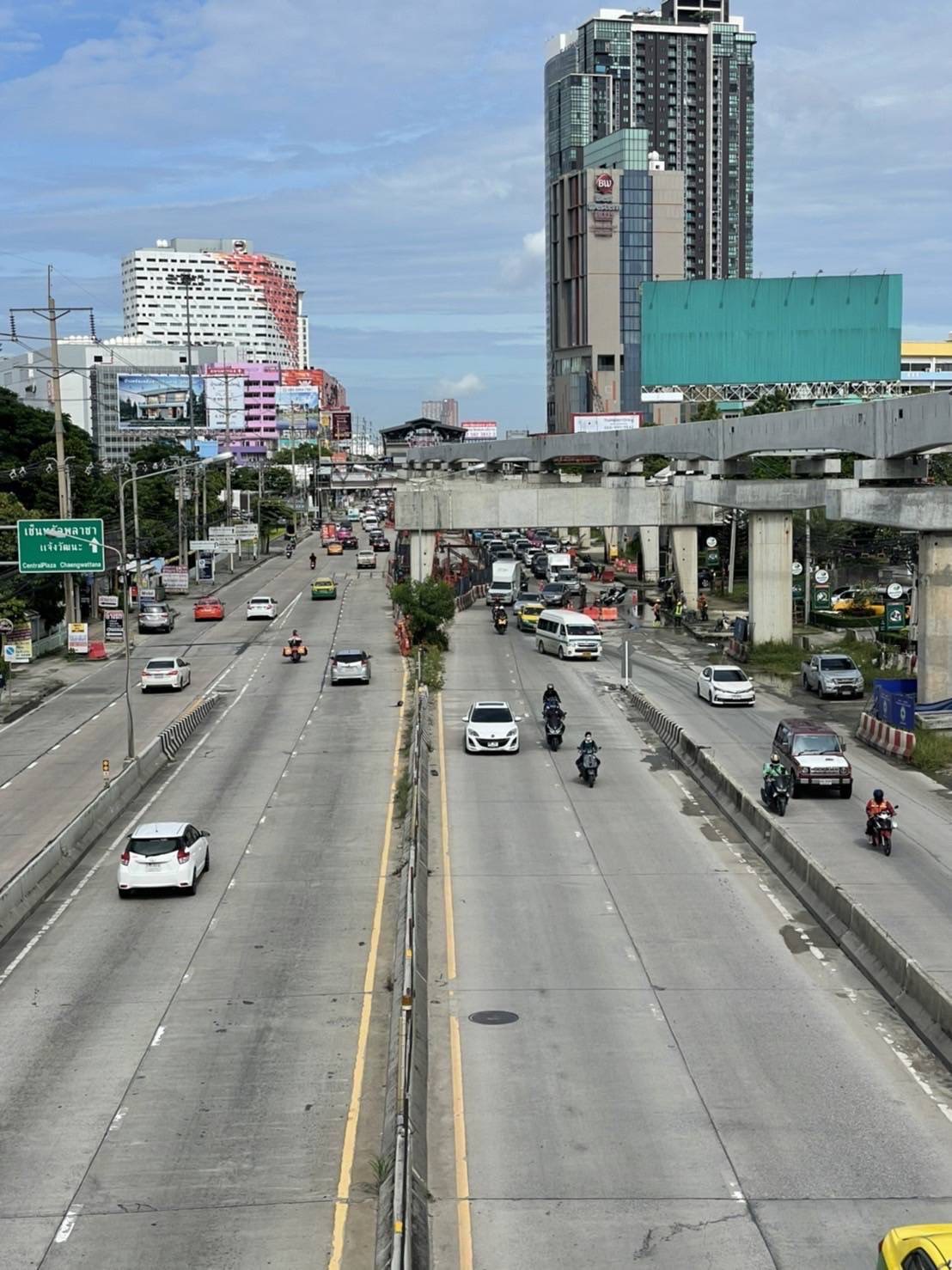 กรมทางหลวง โดยสำนักงานทางหลวงที่ 13 (กรุงเทพ) แขวงทางหลวงนนทบุรี และทีมวิศวกรผู้เชี่ยวชาญได้ร่วมลงพื้นที่ตรวจสอบทันที ขอเรียนชี้แจงว่า พื้นที่ดังกล่าวอยู่บนทางหลวงหมายเลข 304 ซอยแจ้งวัฒนะ - ปากเกร็ด 29 บริเวณหน้าเฮลแลนด์ก่อนขึ้นสะพานข้ามแยกเมืองทองธานี ที่ กม.3+200 ด้านซ้ายทาง ซึ่งอยู่ในโครงการตามแนวรถไฟฟ้าสายสีชมพู งานเปลี่ยนระบบสายไฟฟ้าอากาศเป็นสายไฟฟ้าใต้ดิน โดยเมื่อวันที่ 10 กันยายน 2565 ที่ผ่านมา แขวงทางหลวงนนทบุรีได้รับแจ้งเหตุผิวจราจรชั่วคราวไม่ได้ระดับ แต่เนื่องด้วยการจราจรในพื้นที่อยู่ในช่วงเวลากลางวันไม่สามารถปิดการจราจรเพื่อสกัดผิวถนนซ่อมแซมได้ จึงแก้ไขชั่วคราวในขอบผิวจราจรที่ต่างระดับเบื้องต้นและจะดำเนินการซ่อมแซมในช่วงเวลากลางคืน แต่ในช่วงเวลาดังกล่าวผู้รับจ้างแจ้งว่าบริเวณดังกล่าวมีน้ำท่วมขังทำให้ไม่สามารถซ่อมแซมได้แต่ได้คอยสังเกตการณ์ ประกอบกับมีฝนตกหนักต่อเนื่องจึงสามารถดำเนินการได้ในวันนี้ (11 กันยายน 2565) ทั้งนี้เพื่อป้องกันอุบัติเหตุจากผู้ใช้เส้นทางจึงได้ปิดพื้นที่ดังกล่าวชั่วคราว พร้อมจัดเจ้าหน้าที่บริหารจัดการจราจรอำนวยความสะดวกปลอดภัยให้กับประชาชน