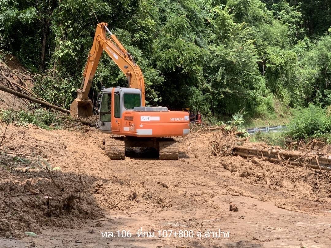 12. จังหวัดลำปาง ทางหลวงหมายเลข 106 ดอยไชย – ห้วยหญ้าไทร อ.เถิน ช่วง กม.ที่ 107+800 ดินสไลด์ปิดทับผิวจราจร การจราจรไม่สามารถผ่านได้