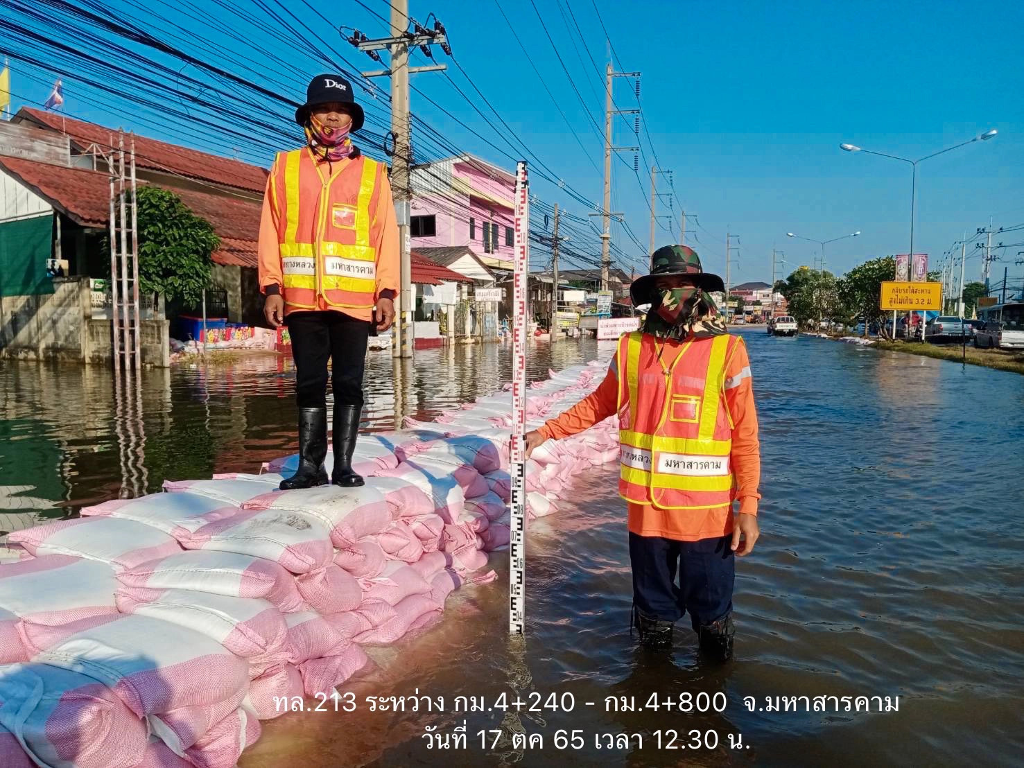 - ทางหลวงหมายเลข 2391 ตอน กู่ทอง - บ้านเขื่อน พื้นที่ อ.โกสุมพิสัย ช่วง กม.ที่ 17+300 - กม.18+000 ระดับน้ำ 20 ซม. ให้ใช้ทางเลี่ยง ทล.12 ช่วง กม.567+900