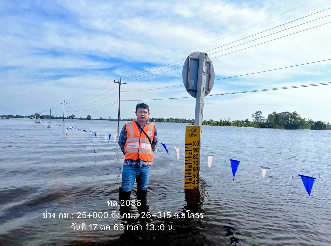 นายสราวุธ  ทรงศิวิไล อธิบดีกรมทางหลวง เปิดเผยว่า จากสถานการณ์น้ำท่วมในหลายพื้นที่ ส่งผลให้ทางหลวงบางเส้นทางมีน้ำท่วมสูงเป็นเหตุให้ไม่สามารถใช้สัญจรได้ตามปกติ กรมทางหลวงได้สั่งการให้ สำนักงานทางหลวง แขวงทางหลวง หมวดทางหลวงทั่วประเทศ เฝ้าระวัง และติดตามสถานการณ์อย่างใกล้ชิด หากพื้นที่ใดประสบปัญหาก็จะระดมบุคลากร นำเครื่องจักรและวัสดุอุปกรณ์เข้าให้การช่วยเหลือเพื่อเร่งระบายน้ำและบรรเทาความเดือดร้อนโดยเร็วที่สุด พร้อมกำชับให้ผู้บริหารในพื้นที่ติดตามสถานการณ์อย่างใกล้ชิด นอกจากนี้ยังติดตั้งป้ายเตือนและอุปกรณ์อำนวยความปลอดภัยแก่ผู้ใช้เส้นทาง ในขณะที่บางจังหวัดก็มีการล้างทำความสะอาดถนนหลังจากน้ำลดลงบ้างแล้ว เพื่อบรรเทาความเดือดร้อนของประชาชนให้ได้รับความสะดวกปลอดภัยในการสัญจรโดยเร็วที่สุดอย่างต่อเนื่อง ตามข้อสั่งการของ นายศักดิ์สยาม ชิดชอบ รัฐมนตรีว่าการกระทรวงคมนาคม ที่มีความห่วงใยประชาชนผู้ประสบภัยในครั้งนี้ พร้อมทั้งเฝ้าระวังตลอด 24 ชั่วโมง เพื่อช่วยประชาชนอย่างทันท่วงที  พร้อมกันนี้กรมทางหลวง ได้ทำการสรุปสถานการณ์อุทกภัยและดินสไลด์บนทางหลวง โดย สถานการณ์ประจำวันที่ 17 ตุลาคม  2565 เวลา 12.30 น. พบทางหลวงถูกน้ำท่วม/ดินสไลด์ ในพื้นที่ 12 จังหวัด ได้แก่ จ.ขอนแก่น, จ.ศรีสะเกษ, จ.นครราชสีมา ,จ.หนองบัวลำภู , จ.อุบลราชธานี, จ.มหาสารคาม, จ.ยโสธร, จ.นครปฐม, จ.อ่างทอง, จ.พระนครศรีอยุธยา, จ.สิงห์บุรี และ จ.นครสวรรค์ จำนวน 28 สายทาง 38 แห่ง  การจราจรผ่านไม่ได้ 27 แห่ง ดังนี้