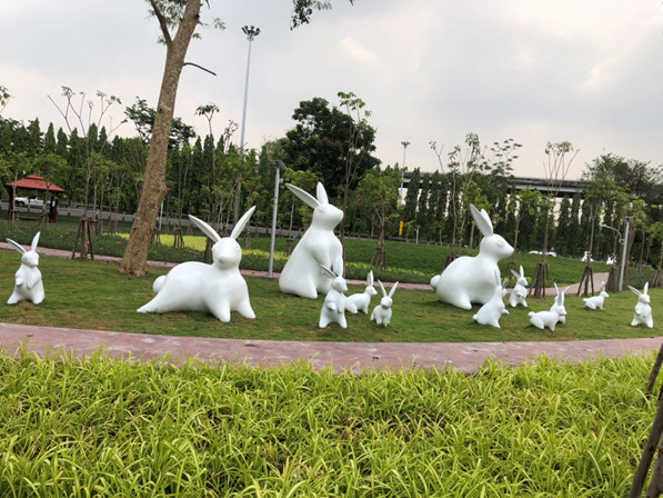 2.โครงการปรับปรุงภูมิทัศน์ทางหลวงหมายเลข 9 (กาญจนาภิเษก) ตอน บางแค – คลองมหาสวัสดิ์ บริเวณ กม.30+056 จ.กรุงเทพมหานคร เป็นพื้นที่ว่างบริเวณต่างระดับฉิมพลี นำแนวความคิดเดิมจากสวนร่มเกล้าชาวทางที่สร้างถวายรัชกาลที่ 9 จุดเด่นได้นำปีนักษัตร (ปีเถาะ) นักษัตรประจำปีในรัชกาลที่ 9 มาออกแบบในงาน เลือกพรรณไม้ที่ดูแลรักษาง่ายและให้ดอกสีสันสวยงาม