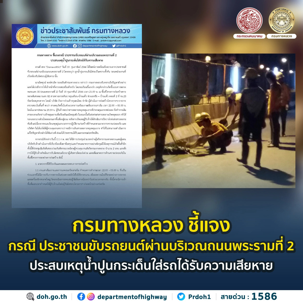 กรมทางหลวง ชี้แจงกรณี ประชาชนขับรถยนต์ผ่านบริเวณถนนพระรามที่ 2 ประสบเหตุน้ำปูนกระเด็นใส่รถ
