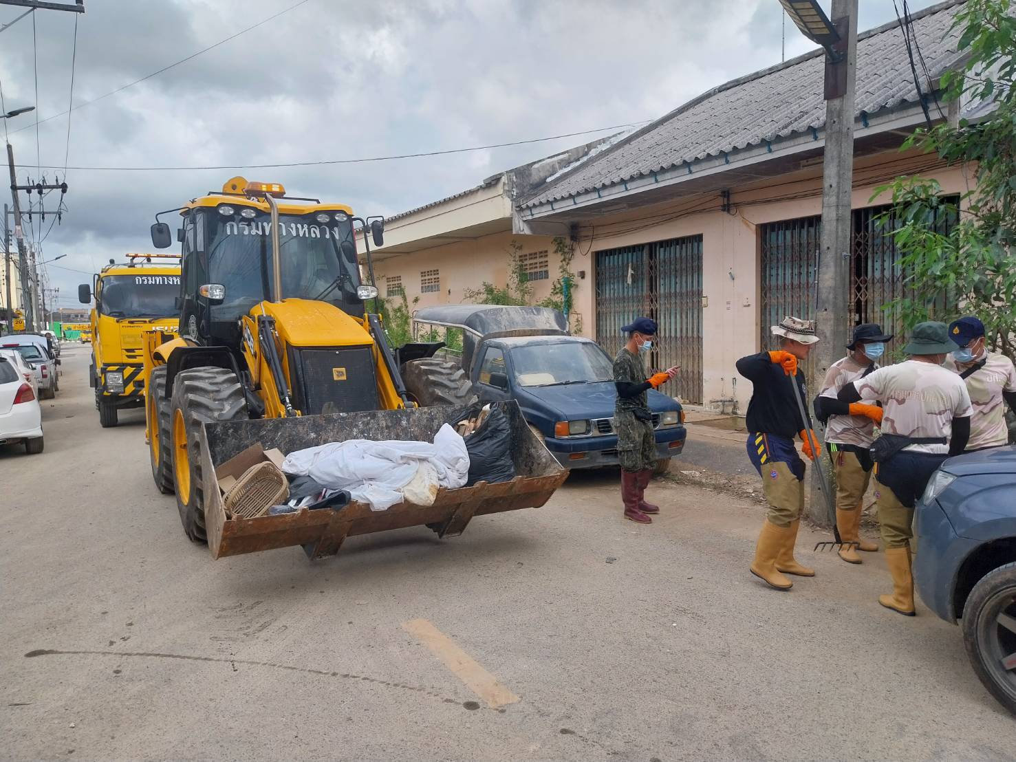 ชุดเครื่องจักรกล สำนักงานทางหลวงที่ 11 และแขวงทางหลวงในสังกัด โดยเจ้าหน้าที่ปฏิบัติการชุดเสริมทัพฟื้นฟูได้รับภารกิจลงพื้นที่หาดใหญ่ เร่งฟื้นฟูทันทีหลังระดับน้ำลด ด้วยการลงพื้นที่ทำความสะอาด ขนย้ายขยะ-โคลน สิ่งของที่เสียหายจากอุทกภัย ปฏิบัติงาน ภารกิจฟื้นฟูเมืองหาดใหญ่ บริเวณถนนราษฎร์อุทิศ ซอย 30 ปฏิบัติงานประจำวันที่ 12 ธันวาคม พ.ศ. 2568 ด้วยรถบรรทุกขนาด 6 ตัน ขนขยะและเศษวัสดุได้จำนวน 6 เที่ยว ระยะทางไป-กลับ 6 กิโลเมตร และใช้น้ำฉีดล้างทำความสะอาดจำนวน 5 เที่ยว