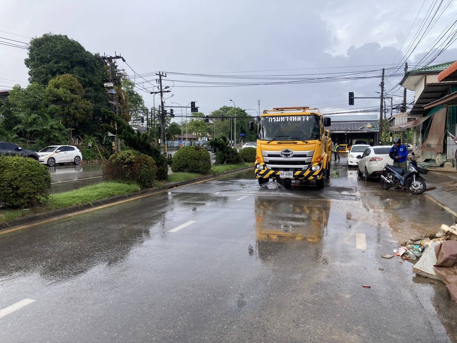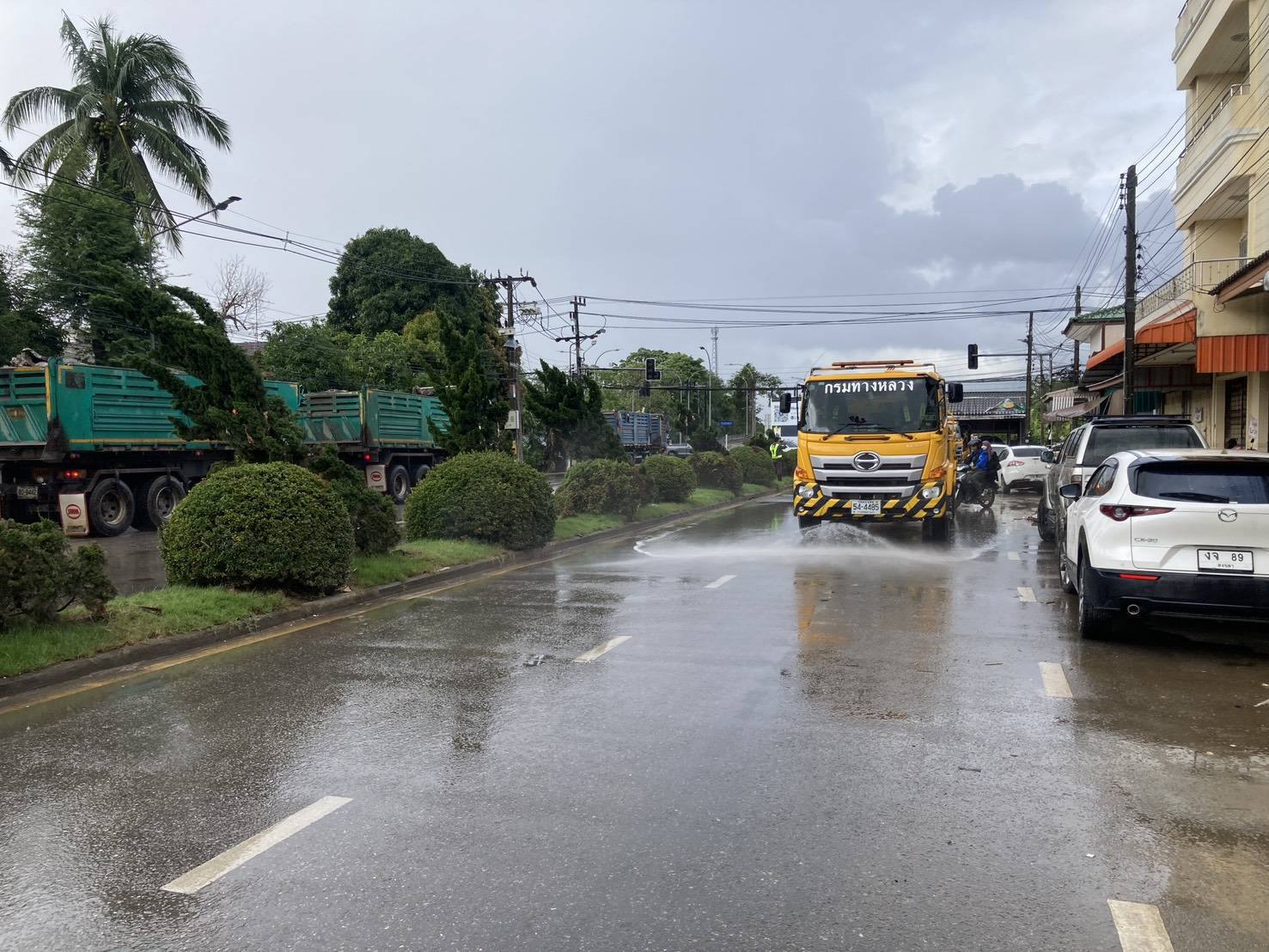 ชุดเครื่องจักรกล สำนักงานทางหลวงที่ 11 และแขวงทางหลวงในสังกัด โดยเจ้าหน้าที่ปฏิบัติการชุดเสริมทัพฟื้นฟูได้รับภารกิจลงพื้นที่หาดใหญ่ เร่งฟื้นฟูทันทีหลังระดับน้ำลด ด้วยการลงพื้นที่ทำความสะอาด ขนย้ายขยะ-โคลน สิ่งของที่เสียหายจากอุทกภัย ปฏิบัติงาน ภารกิจฟื้นฟูเมืองหาดใหญ่ บริเวณถนนเขต 8 ปฏิบัติงานประจำวันที่ 14 ธันวาคม พ.ศ. 2568 (เวลา 09.00 น.-14.00 น.) ด้วยรถน้ำฉีดล้างทำความสะอาดพื้นที่ ที่ได้รับมอบหมาย แล้วเสร็จ