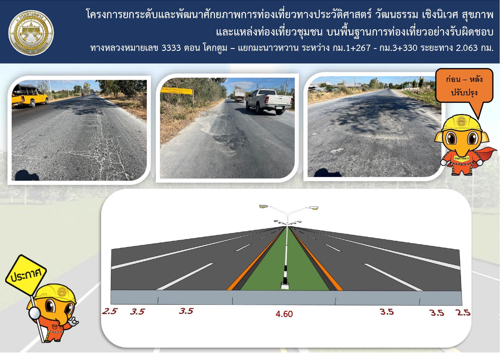 กิจกรรมก่อสร้างทางหลวงพัฒนาพื้นที่ระดับภาค ทางหลวงหมายเลข 3333 ตอนโคกตูม – แยกมะนาวหวาน ระหว่าง กม.6+375 – กม.15+680