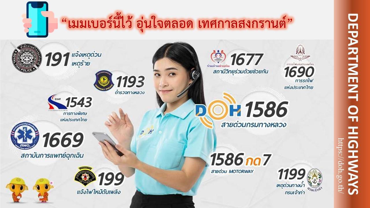 สายด่วนกรมทางหลวง เบอร์ติดต่อช่วงเทศกาลฯ