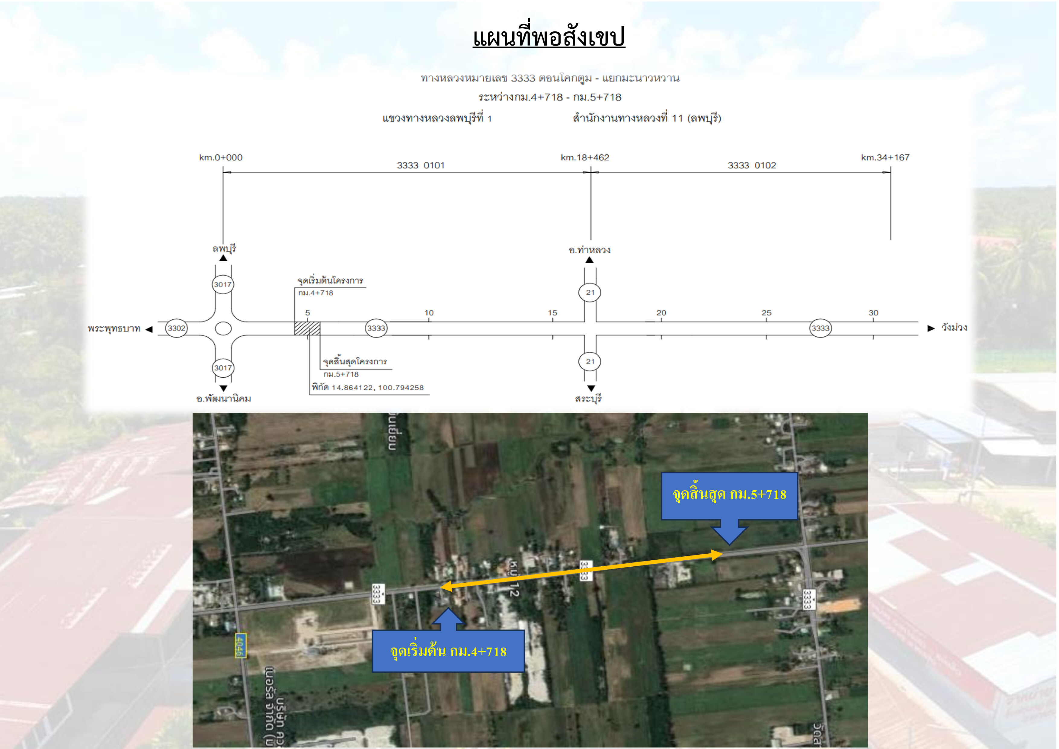 กิจกรรมก่อสร้างทางหลวงพัฒนาพื้นที่ระดับภาค ทางหลวงหมายเลข 3333 ตอนโคกตูม – แยกมะนาวหวาน ระหว่าง กม.6+375 – กม.15+680