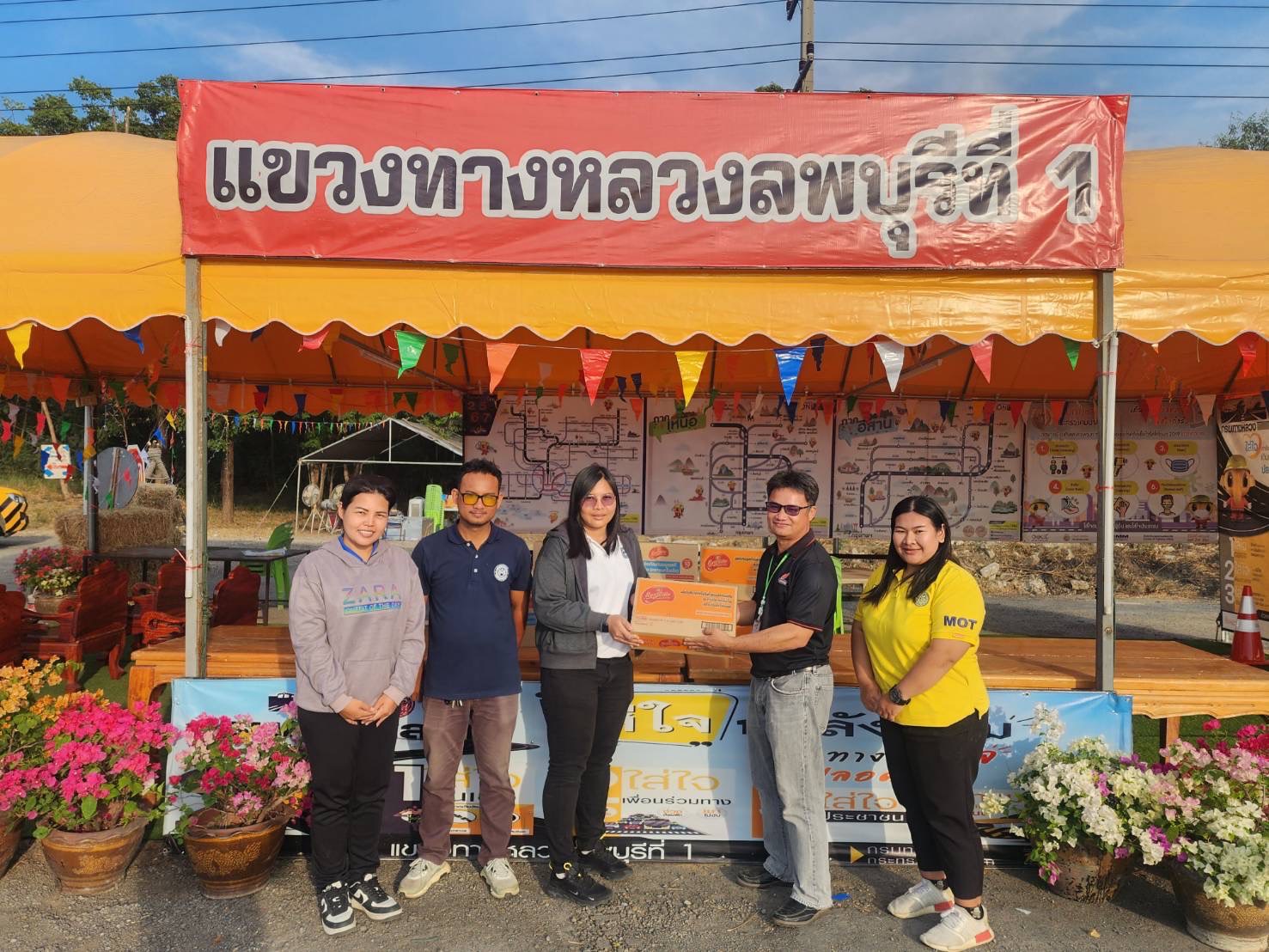รับมอบของจากบริษัทให้กับศูนย์อำนวยความสะดวกปลอดภัยฯ ของแขวงทางหลวงลพบุรีที่ 1
