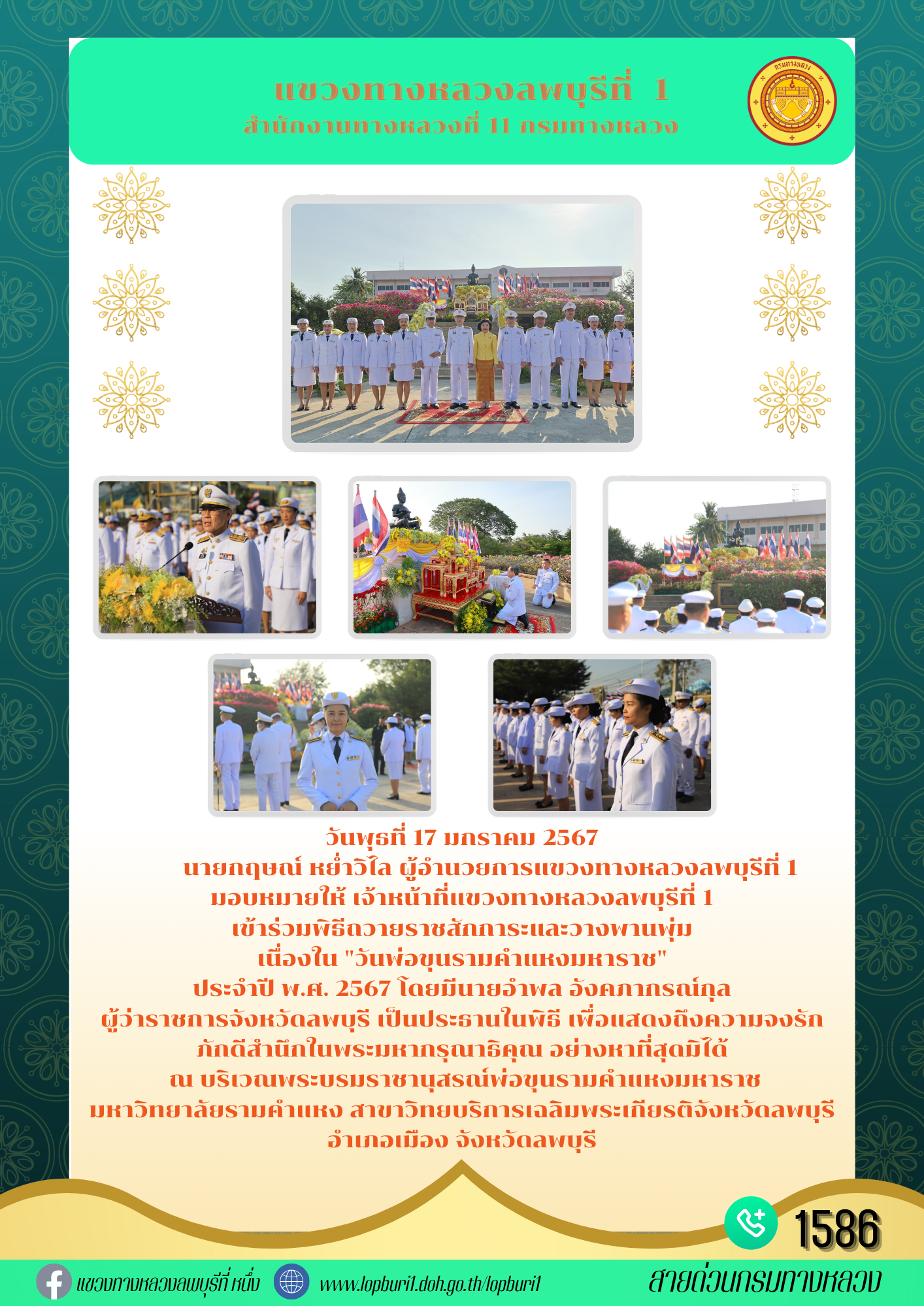 เข้าร่วมพิธีทำบุญตักบาตรและบวงสรวงสมเด็จพระนารายณ์มหาราช ประจำปี 2567