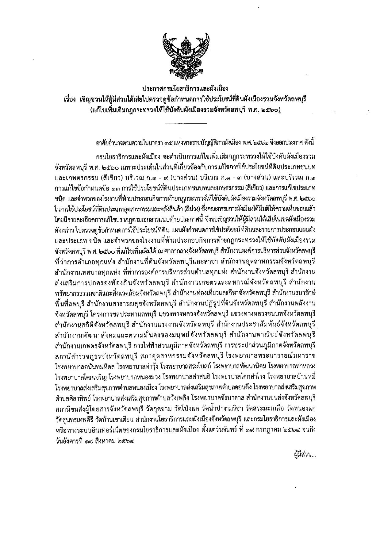 ประชาสัมพันธ์ ประกาศกรมโยธาธิการและผังเมือง