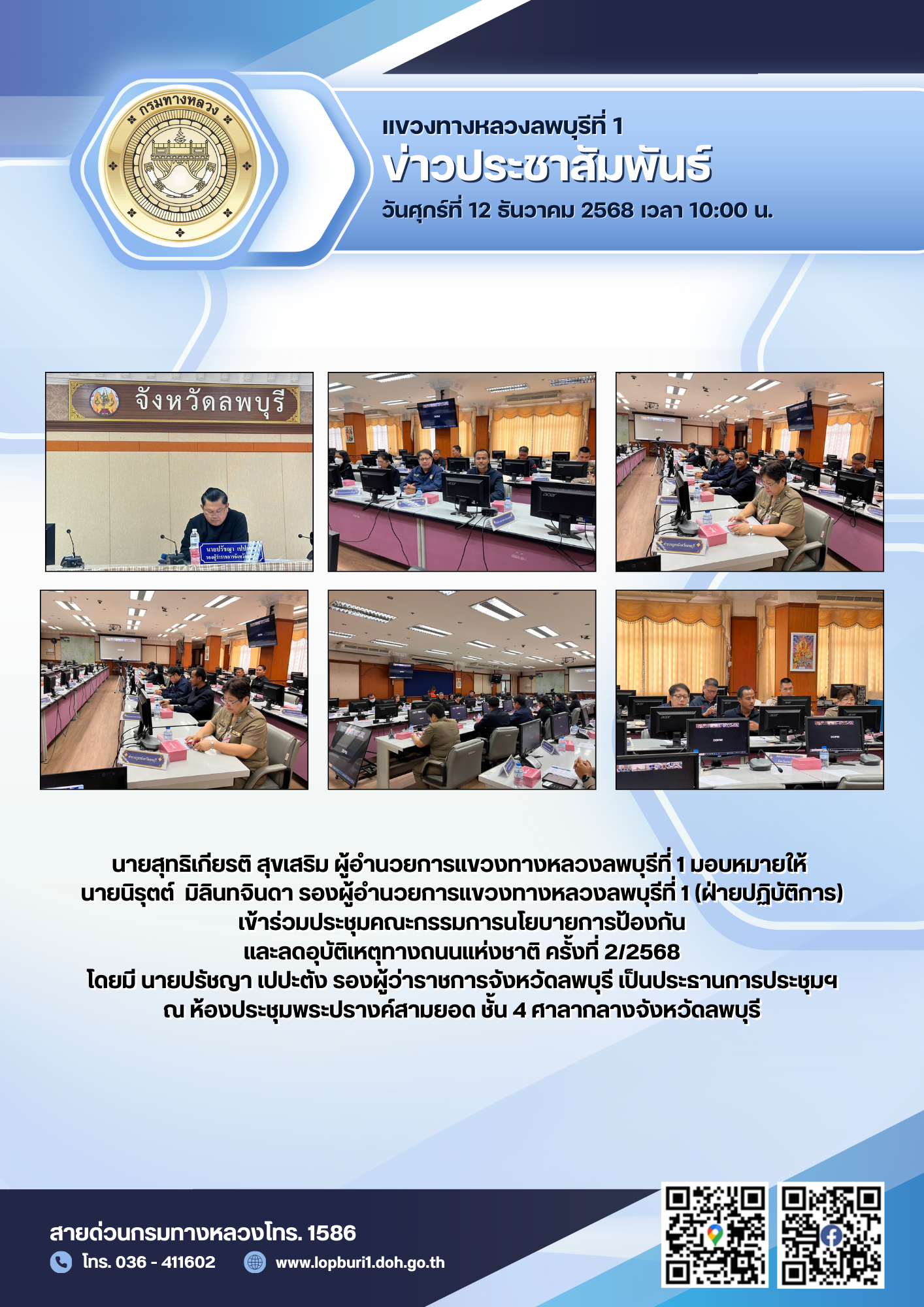 เข้าร่วมประชุมคณะกรรมการนโยบายการป้องกัน และลดอุบัติเหตุทางถนนแห่งชาติ ครั้งที่ 2/2568