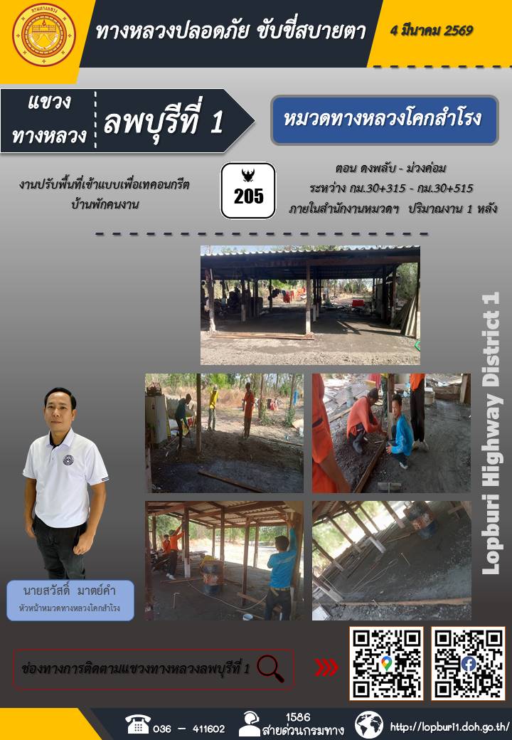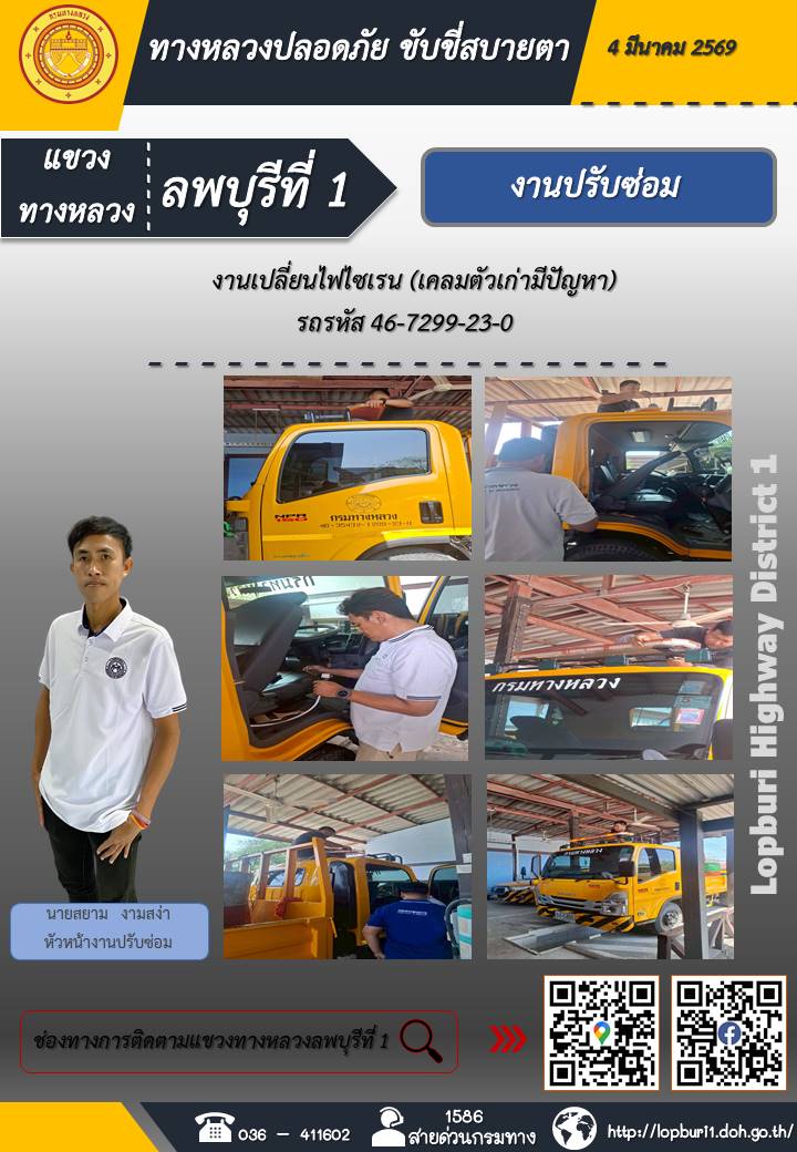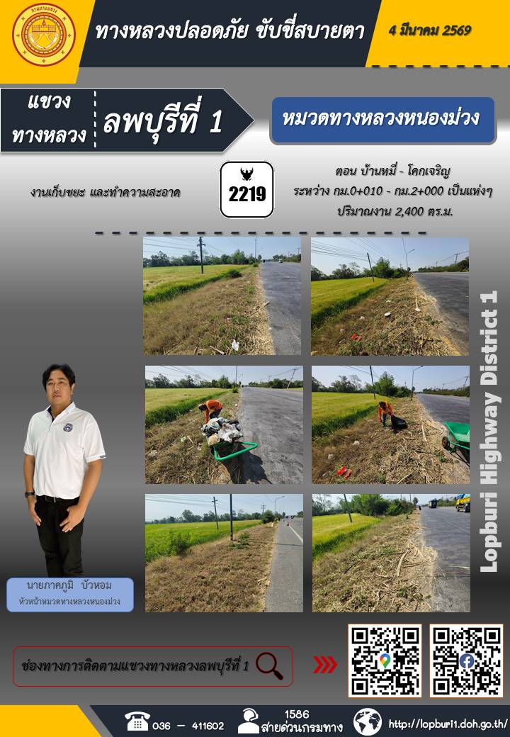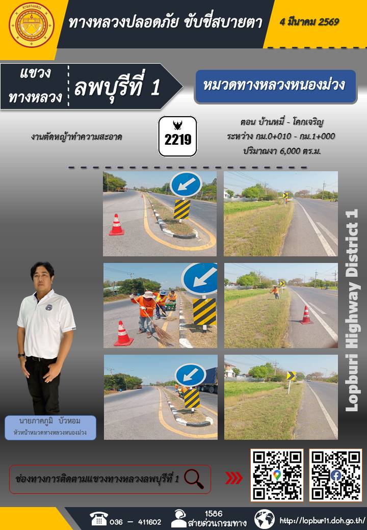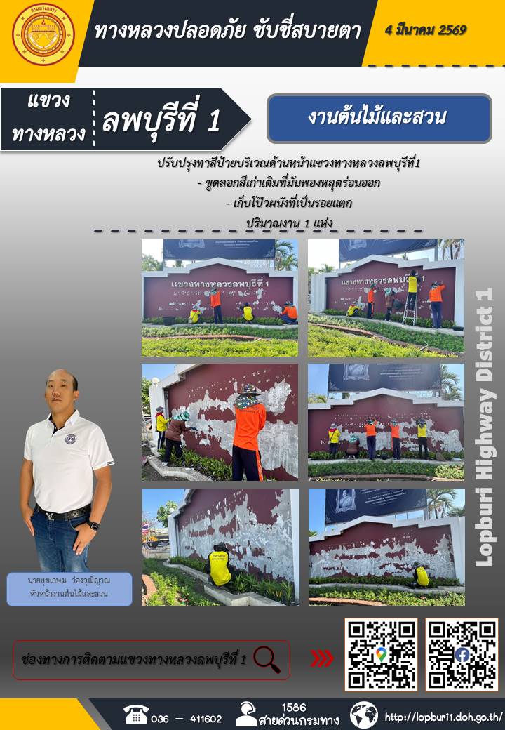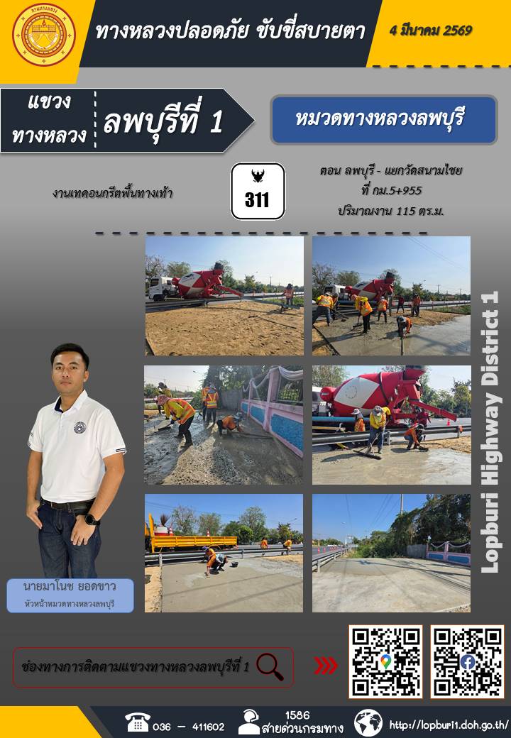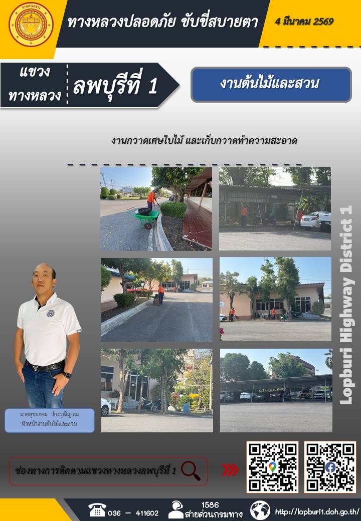 ทางหลวงปลอดภัยขับขี่สบายตา แขวงทางหลวงลพบุรีที่ 1 ประจำวันที่ 4 มีนาคม 2569