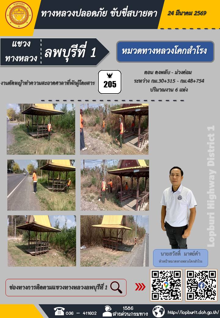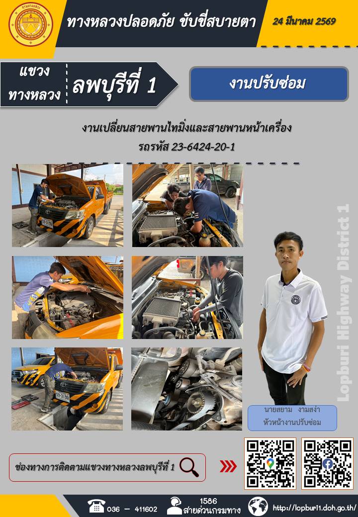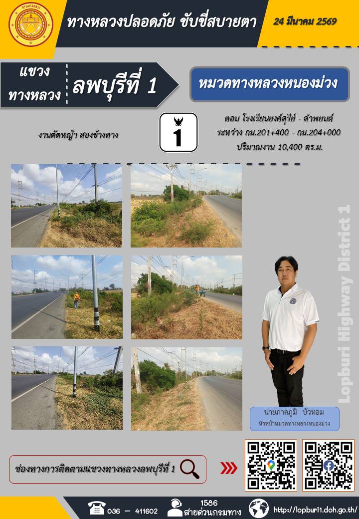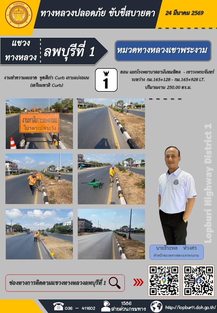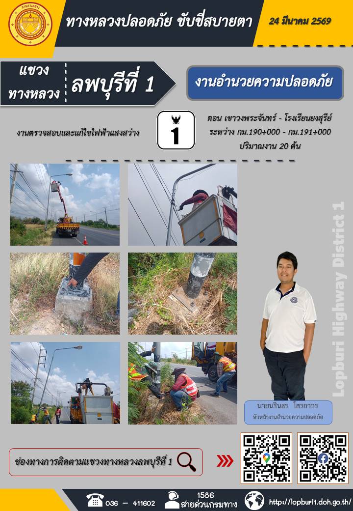 ทางหลวงปลอดภัยขับขี่สบายตา แขวงทางหลวงลพบุรีที่ 1 ประจำวันที่ 24 มีนาคม 2569