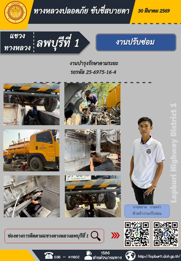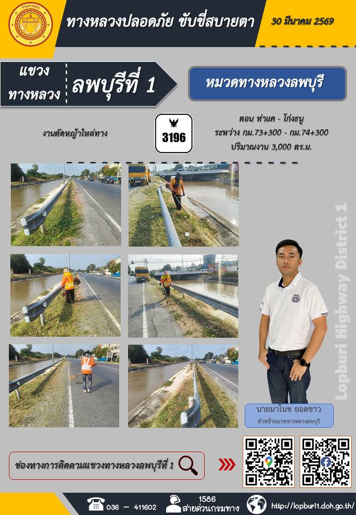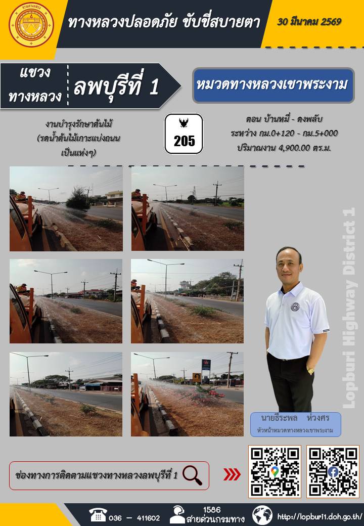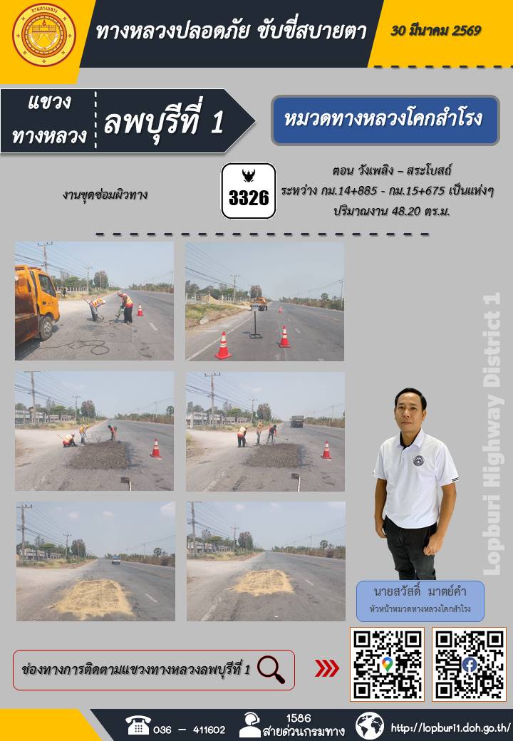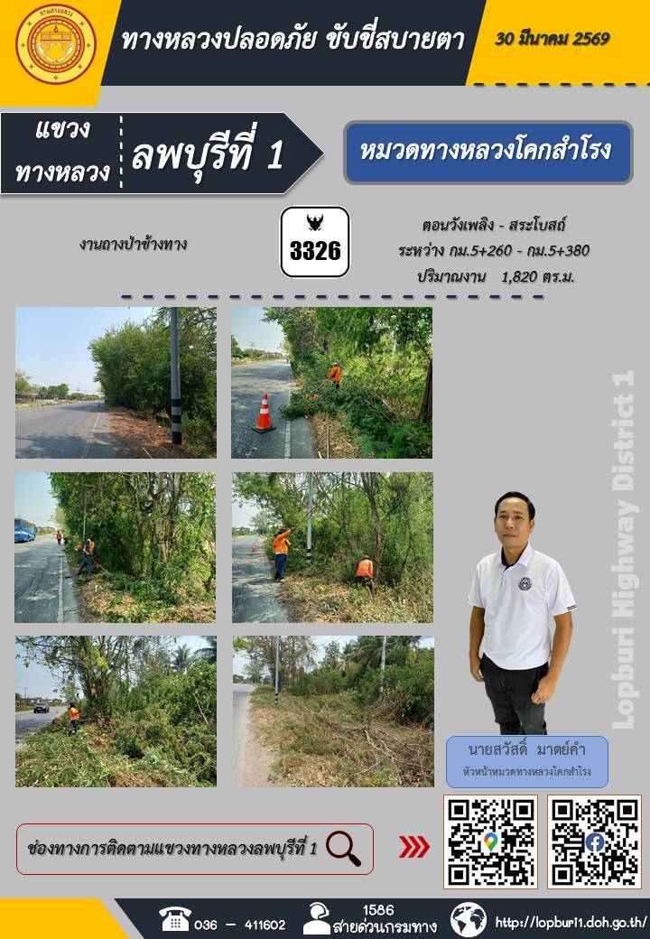 ทางหลวงปลอดภัยขับขี่สบายตา แขวงทางหลวงลพบุรีที่ 1 ประจำวันที่ 30 มีนาคม 2569