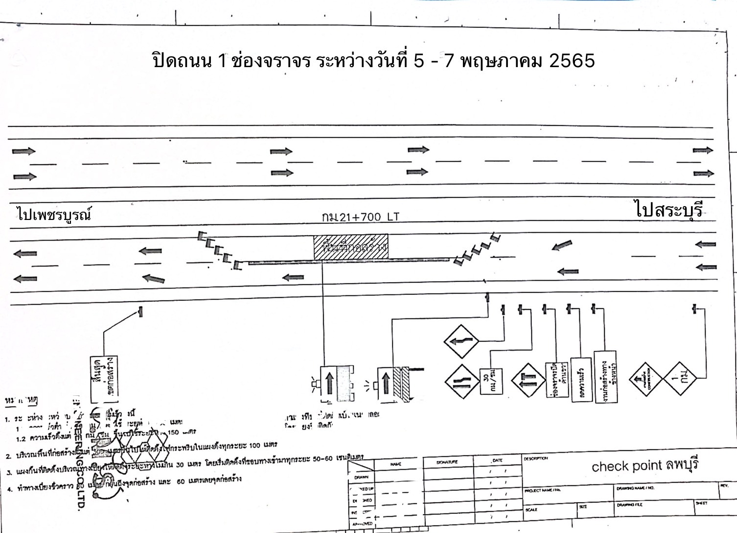 ประชาสัมพันธ์งานก่อสร้าง และปิดการจราจรช่องเลนซ้ายทางและเลนขวาทาง บนทางหลวงหมายเลข 21 ตอนสะพานพุแค - แยกมะนาวหวาน ที่ กม.21+700 LT และที่กม.23+300 RT ตั้งแต่วันที่ 2 - 13 พฤษภาคม 2565 ระยะเวลาทำการ 180 วัน เพื่อประชาสัมพันธ์ให้ประชาชนผู้ใช้ส้นทางและผู้ที่เกี่ยวข้องได้ทราบ เพื่อหลีกเลี่ยงการใช้เส้นทางดังกล่าว