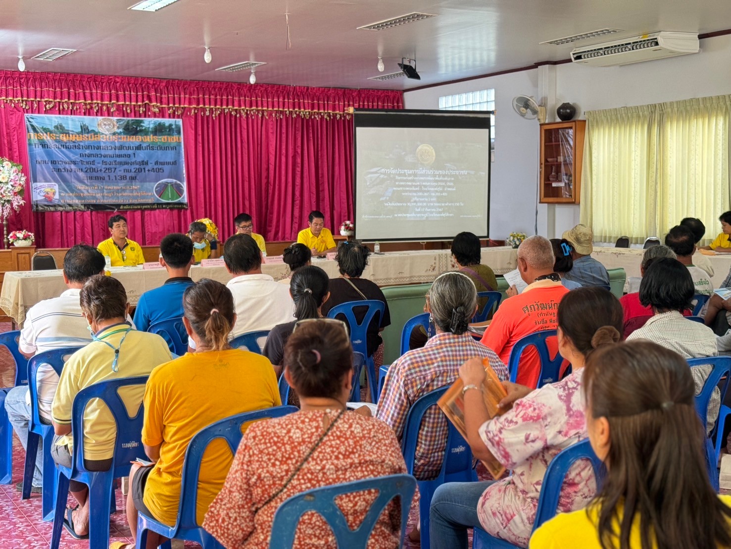 การจัดประชุมการมีส่วนร่วมของประชาชน โครงการก่อสร้างโครงข่ายทางหลวงแผ่นดิน กิจกรรมก่อสร้างทางหลวงพัฒนาพื้นที่ระดับภาค งานก่อสร้างเพิ่มมาตรฐานทางหลวงระดับภาค ทางหลวงหมายเลข 1 ตอน เขาวงพระจันทร์ – โรงเรียนยงค์สุรีย์ - ลำพยนต์ ระหว่าง กม.200+267 - กม.201+405