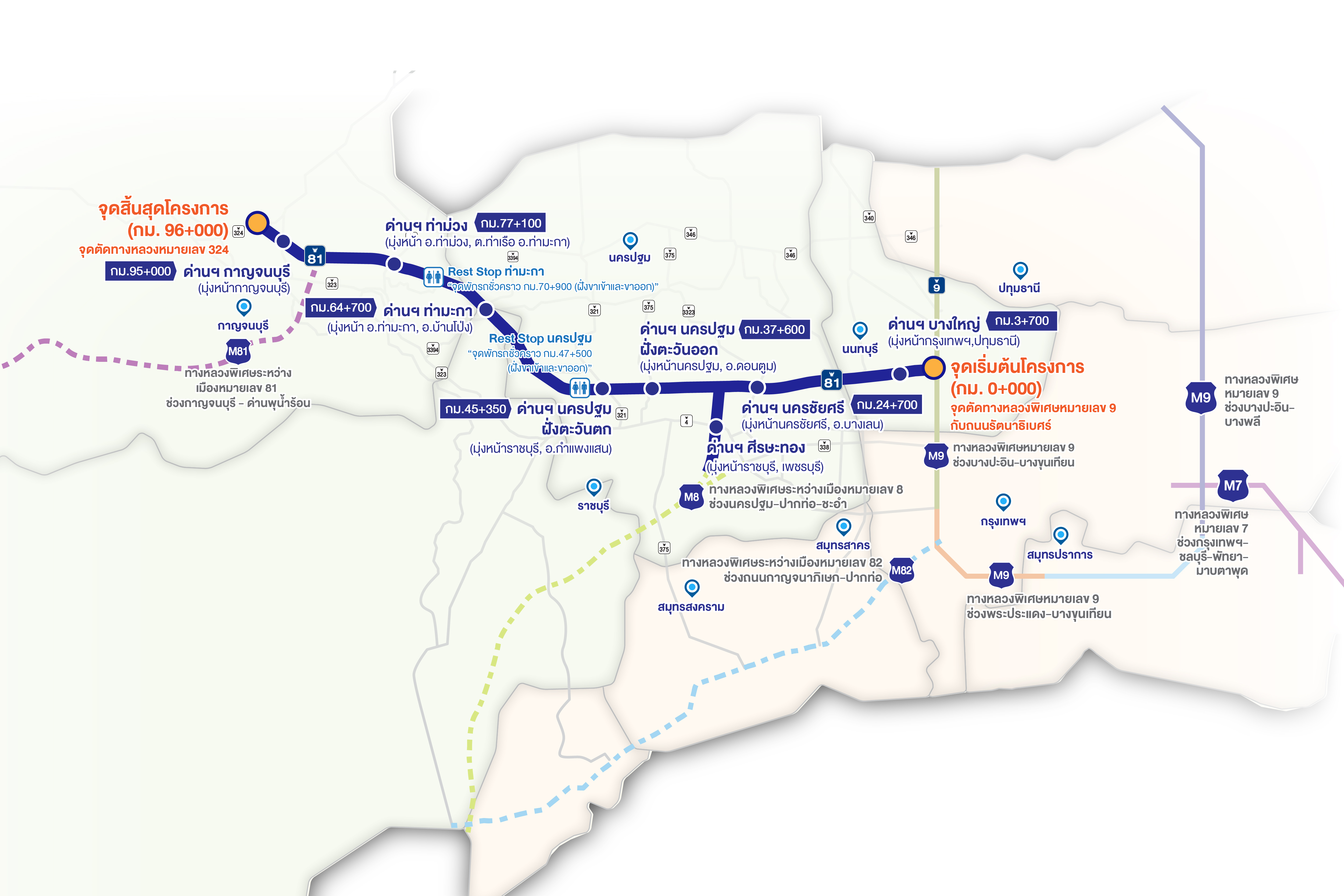 มอเตอร์เวย์ M81 นับเป็นโครงข่ายทางหลวงพิเศษที่มีบทบาทสำคัญในการขับเคลื่อนยุทธศาสตร์ชาติ โดยจะช่วยยกระดับระบบคมนาคมขนส่งและโลจิสติกส์ของประเทศให้มีประสิทธิภาพสูงขึ้น เป็นเส้นทางยุทธศาสตร์ที่เชื่อมโยงพื้นที่เศรษฐกิจ ชุมชน และแหล่งท่องเที่ยวที่สำคัญในภาคตะวันตก ได้แก่ จังหวัดนนทบุรี นครปฐม ราชบุรี และกาญจนบุรี อีกทั้งยังเป็นอีกหนึ่งทางเลือกในการเดินทางสู่ภาคใต้ ช่วยบรรเทาความหนาแน่นของการจราจรบนถนนกาญจนาภิเษกและถนนเพชรเกษมได้อย่างมีประสิทธิภาพ ส่งเสริมให้การเดินทางของประชาชนมีความสะดวก รวดเร็ว และปลอดภัยมากยิ่งขึ้น