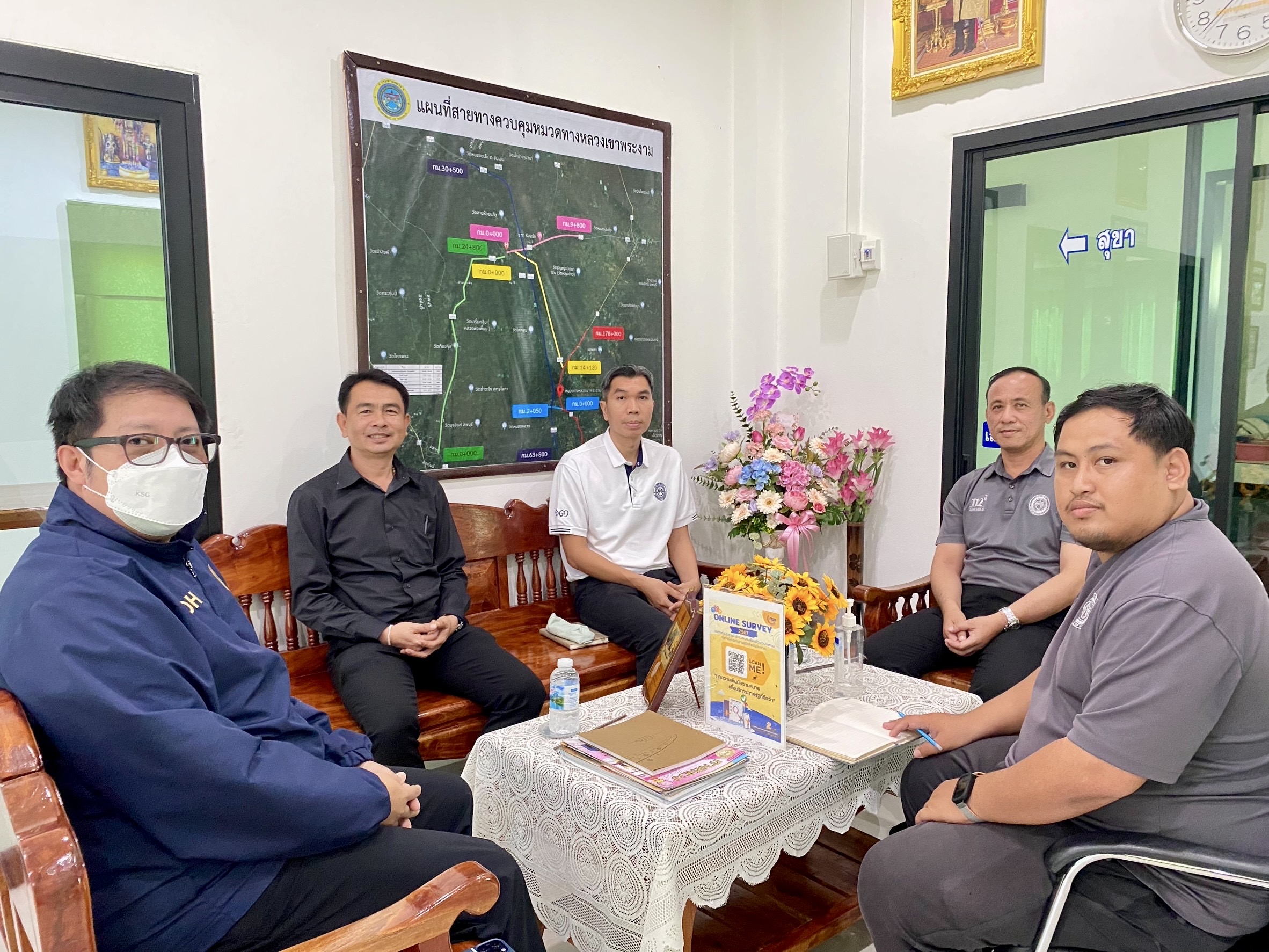 นายสุทธิเกียรติ สุขเสริม ผู้อำนวยการแขวงทางหลวงลพบุรีที่ 1 พร้อมด้วย รองผู้อำนวยการแขวงทางหลวงลพบุรีที่ 1 นายนิรุตต์ มิลินทจินดา (ฝ่ายปฏิบัติการ) และ นายทรงศักดิ์ ทองสุข (ฝ่ายวิศวกรรม)