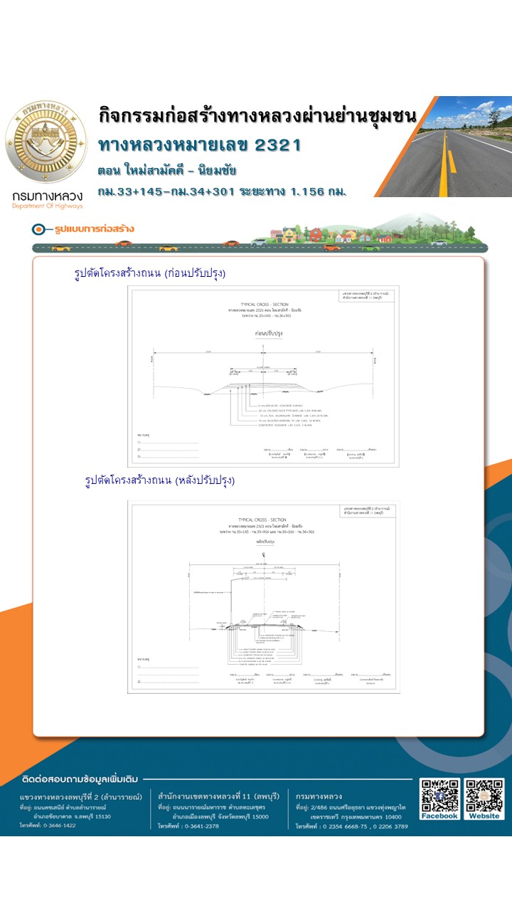 ประชาสัมพันธ์เชิญเข้าร่วมประชุมรับฟังความคิดเห็นของประชาชนโครงการก่อสร้างโครงข่ายทางหลวงแผ่นดิน กิจกรรมก่อสร้างทางหลวงผ่านชุมชนเพื่อคนทุกกลุ่ม งานพัฒนาทางหลวงผ่านย่านชุมชน ทางหลวงหมายเลข 2321 ตอน ใหม่สามัคคี – นิยมชัย ระหว่าง กม.33+145 – กม.34+301 ระยะทาง 1.156 กิโลเมตร