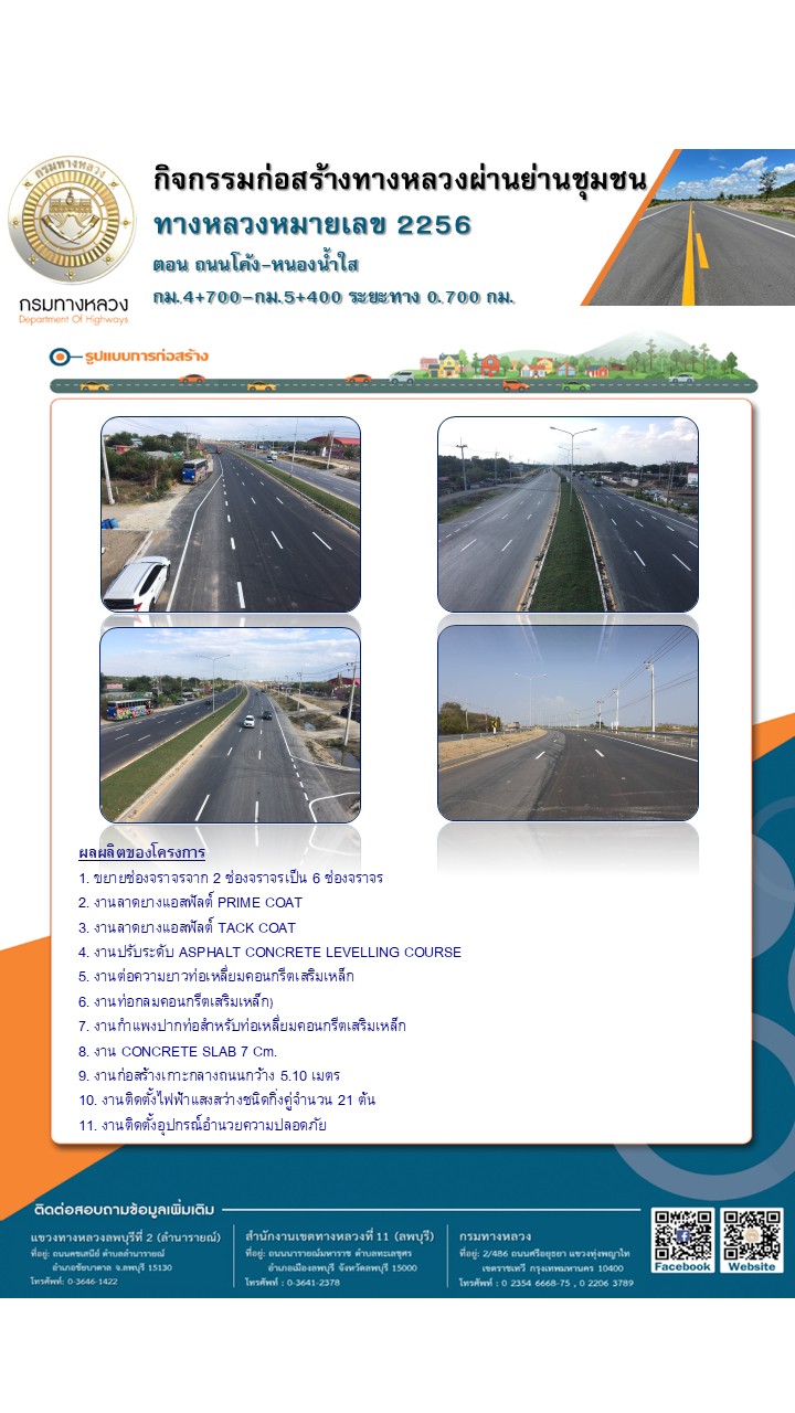 ประชาสัมพันธ์เชิญเข้าร่วมประชุมรับฟังความคิดเห็นของประชาชนโครงการก่อสร้างโครงข่ายทางหลวงแผ่นดิน กิจกรรมก่อสร้างทางหลวงผ่านชุมชนเพื่อคนทุกกลุ่ม งานพัฒนาทางหลวงผ่านย่านชุมชน ทางหลวงหมายเลข 2256 ตอน ถนนโค้ง – หนองน้ำใส ระหว่าง กม.4+700 – กม.5+400 ระยะทาง 0.700 กิโลเมตร