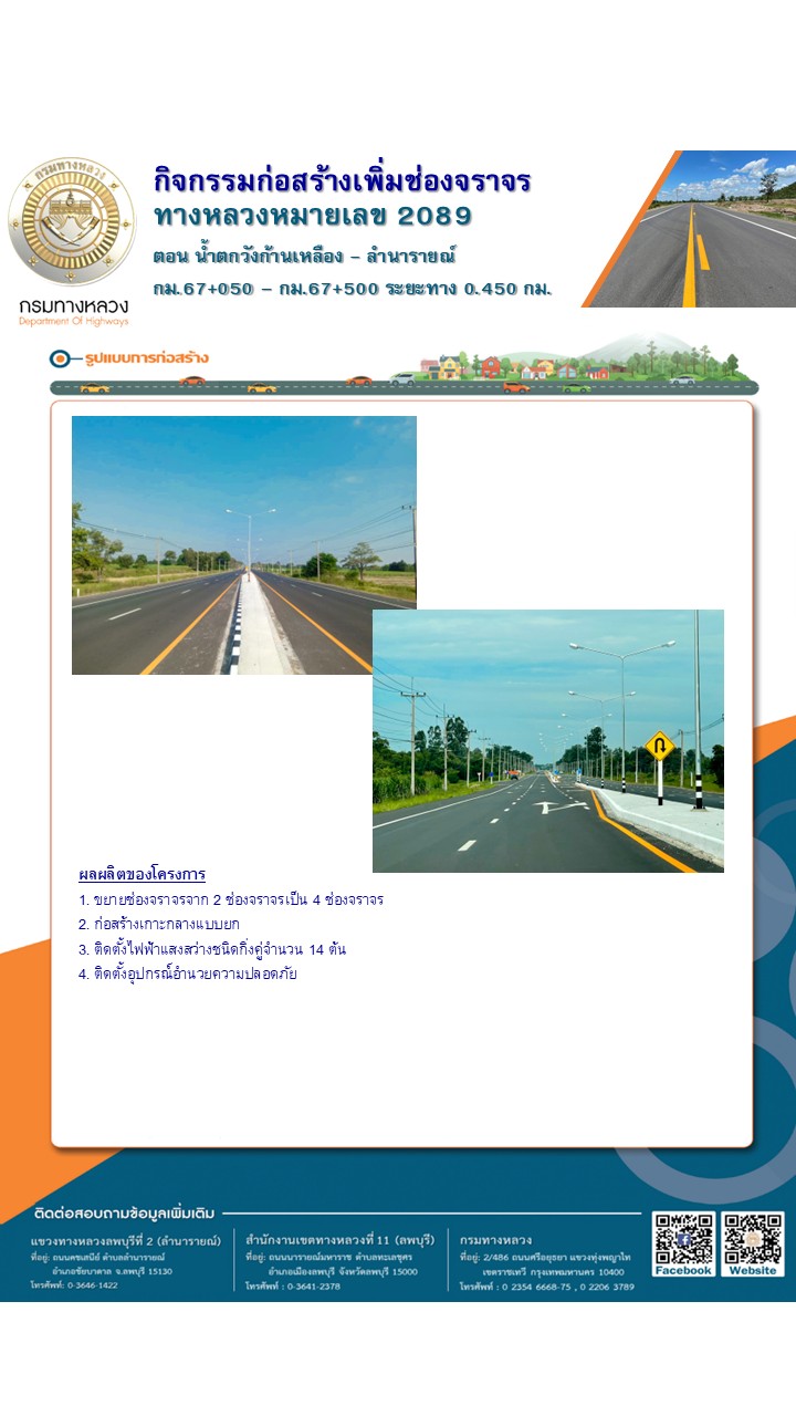 ประชาสัมพันธ์เชิญเข้าร่วมประชุมรับฟังความคิดเห็นของประชาชนกิจกรรมก่อสร้างเพิ่มประสิทธิภาพทางหลวง – กิจกรรมเพิ่มช่องจราจร ทางหลวงหมายเลข 2089 ตอน น้ำตกวังก้านเหลือง – ลำนารายณ์ ระหว่าง กม.67+050 – กม.67+500 ระยะทาง 0.450 กิโลเมตร
