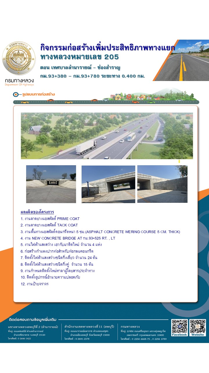 ประชาสัมพันธ์เชิญเข้าร่วมประชุมรับฟังความคิดเห็นของประชาชนกิจกรรมก่อสร้างเพิ่มประสิทธิภาพทางแยก ทางหลวงหมายเลข 205 ตอน เทศบาลลำนารายณ์ – ช่องสำราญ ระหว่าง กม.93+380 – กม.93+780 ระยะทาง 0.400 กิโลเมตร