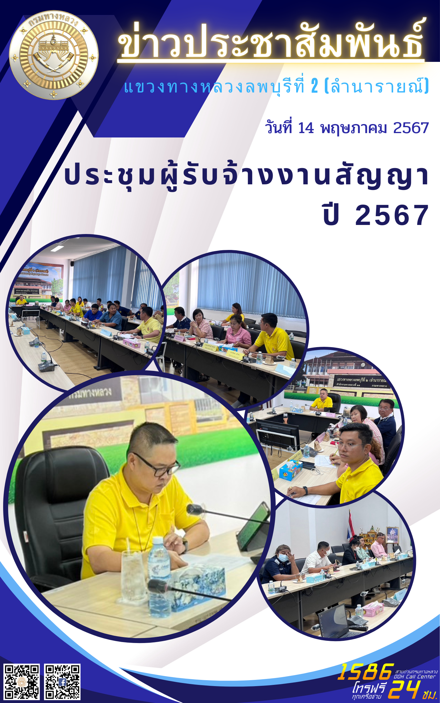 วันที่ 16 พฤษภาคม 2567 เวลา 10.00 น. นายชาญ สุทธิโพธิ์ ผู้อำนวยการแขวงทางหลวงลพบุรีที่ 2 จัดการประชุมผู้ควบคุมงาน และผู้ช่วยผู้ควบคุมงาน ที่รับผิดชอบงาน สำนักบริหารบำรุงทาง สำนักแผนงาน และสำนักอำนวยความปลอดภัย ร่วมกับผู้รับจ้าง เพื่อวางมาตรการเร่งรัดและปรับแผนการดำเนินงานผู้รับจ้าง ให้ทำงานได้รวดเร็ว และเสร็จทันตามกำหนดเวลาในสัญญาอีกเพื่อให้ทราบถึงปัญหาและอุปสรรคในการดำเนินงาน พร้อมหารือแนวทางป้องกันแก้ไขปัญหาในการประชุมครั้งนี้ด้วย
