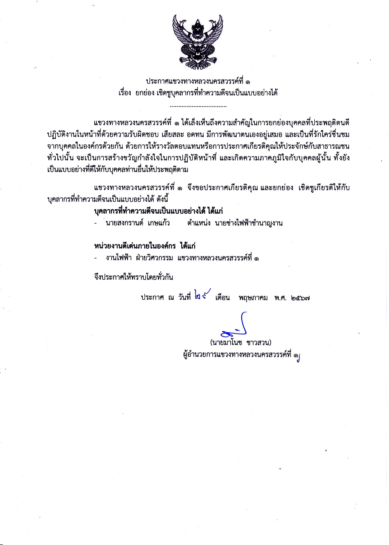 ยกย่อง เชิดชูบุคลากรที่ทำความดีจนเป็นแบบอย่าง