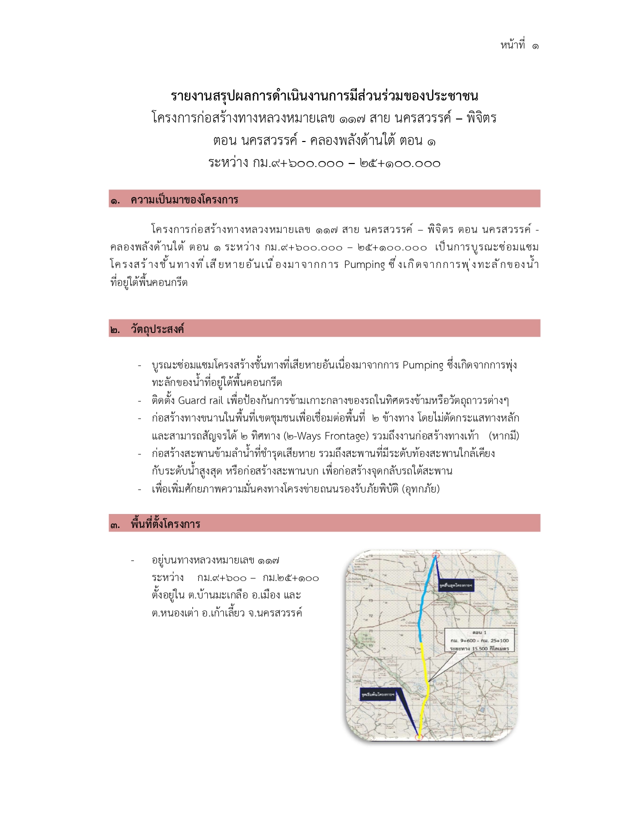 การประชุมการมีส่วนร่วมของประชาชน โครงการก่อสร้างทางหลวงหมายเลข 117 สาย นครสวรรค์ – พิจิตร ตอน นครสวรรค์ – คลองพลังด้านใต้ ตอน 1 ระหว่าง กม. 9+600 – กม. 25+100