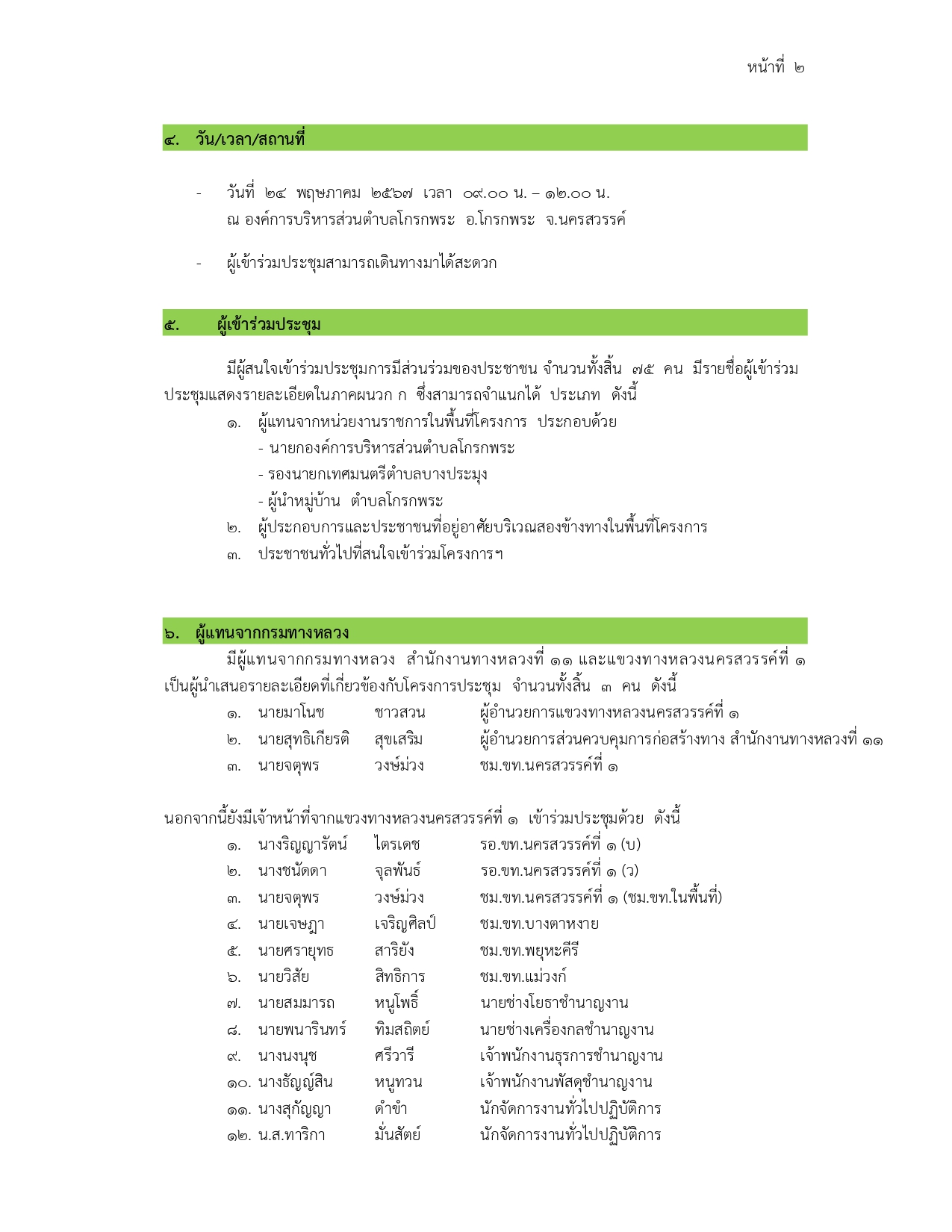 การประชุมการมีส่วนร่วมของประชาชน โครงการก่อสร้างทางหลวงหมายเลข 117 สาย นครสวรรค์ – พิจิตร ตอน นครสวรรค์ – คลองพลังด้านใต้ ตอน 2 ระหว่าง กม. 25+100 – กม. 40+300