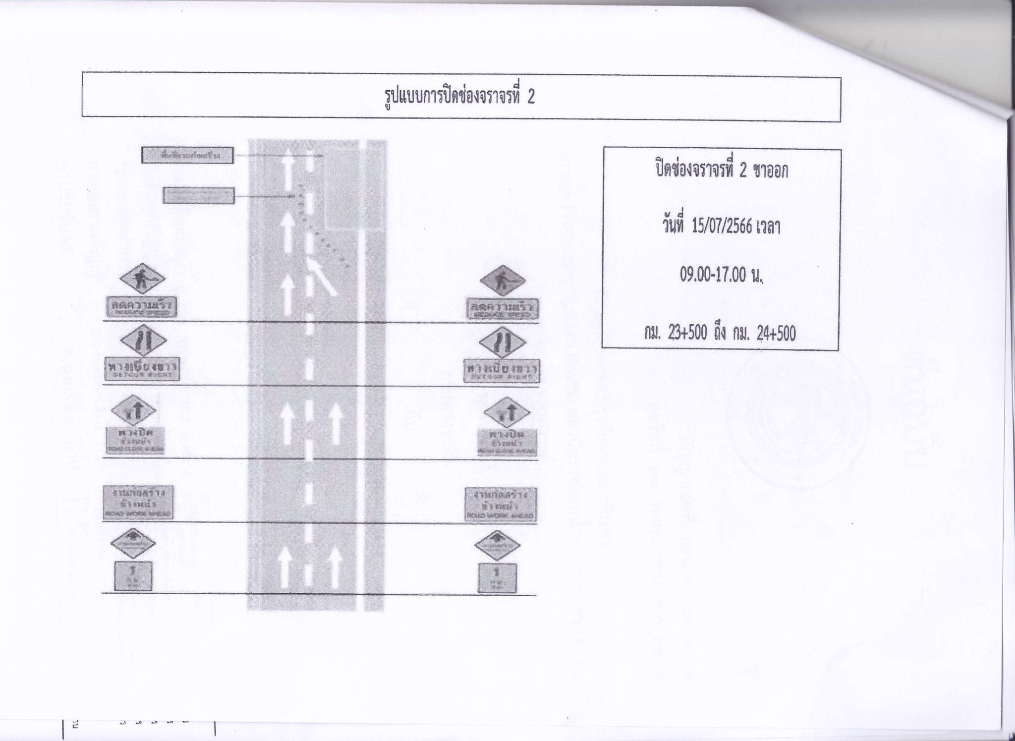 2. วันที่ 15 กรกฎาคม 2566 ตั้งแต่เวลา 09.00น. – 17.00 น. ปิดช่องจราจรที่ 2