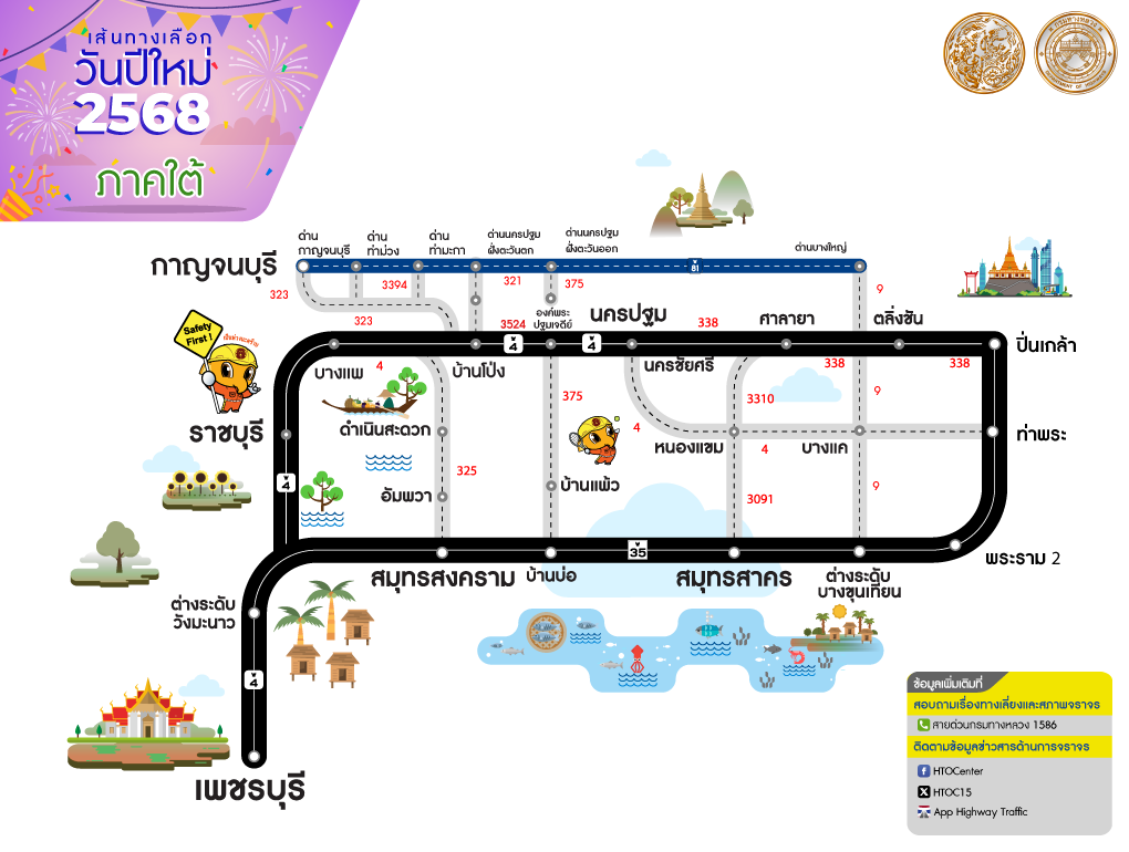 กรมทางหลวง แนะนำเส้นทางเลือกให้กัประชาชนในช่วงเทศกาลปีใหม่ระหว่างวันที่ 27 ธันวาคม 2567 – 2 มกราคม 2568 เพื่อเป็นการอำนวยความสะดวกแก่ผู้เดินทางและหลีกเลี่ยงปัญหาการจราจรติดขัด และช่วยให้ประชาชนวางแผนการเดินทางล่วงหน้าได้เป็นอย่างดีบนทางหลวงสายหลักและสายรอง ดังนี้