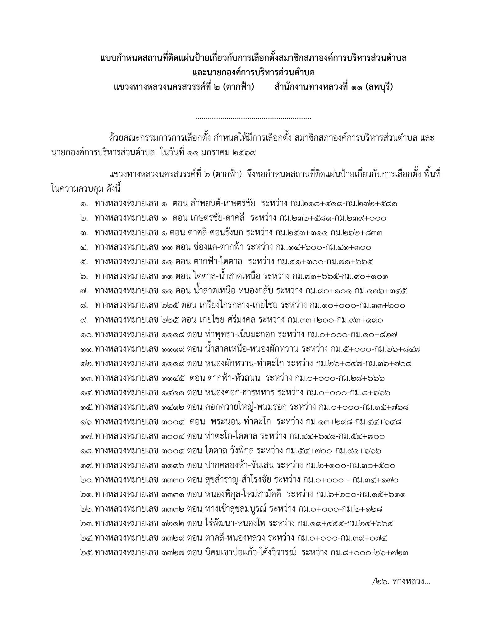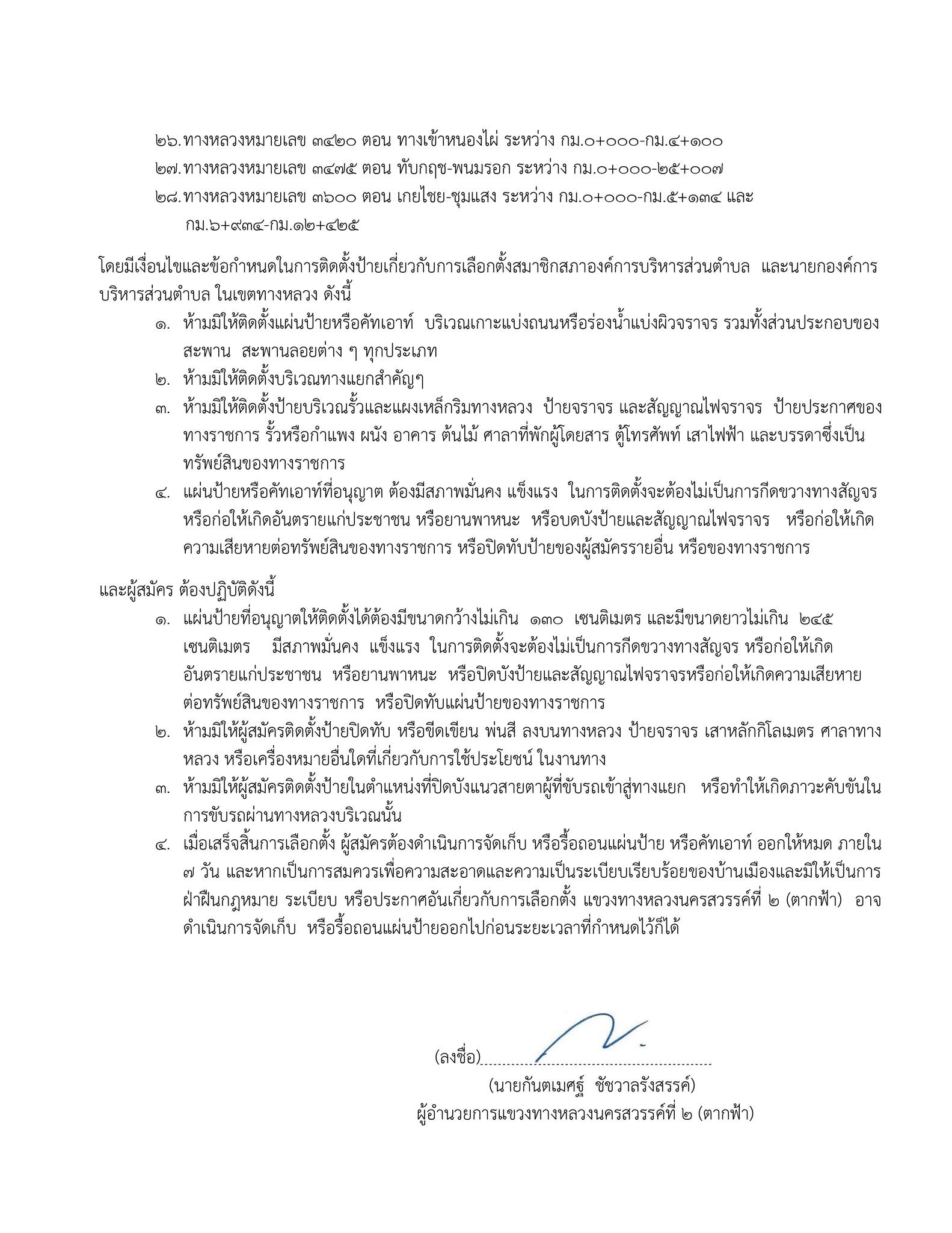 ประกาศแขวงทางหลวงนครสวรรค์ที่ 2 (ตากฟ้า) กำหนดสถานที่ติดตั้งแผ่นป้าย หาเสียงเกี่ยวกับการเลือกตั้ง