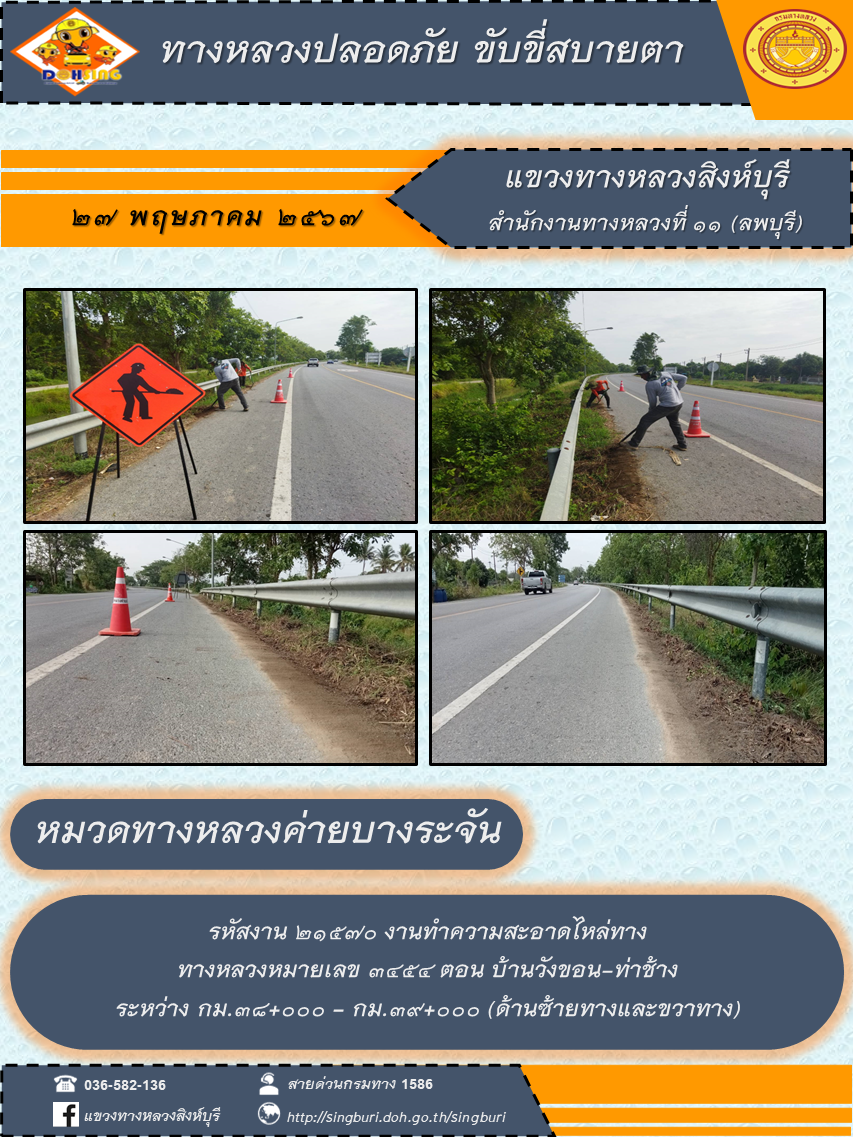 ผลการปฏิบัติงาน ตั้งแต่วันที่ 20 - 24 พฤษภาคม 2567 แขวงทางหลวงสิงห์บุรี