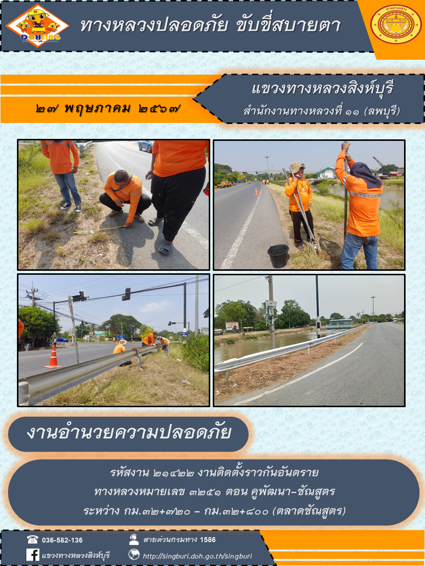 ข้อมูลภาพกิจกรรม : ประชาสัมพันธ์ วันที่ 27 พฤษภาคม 2567 ผลการปฏิบัติงาน ตั้งแต่วันที่ 20 - 24 พฤษภาคม 2567 แขวงทางหลวงสิงห์บุรี