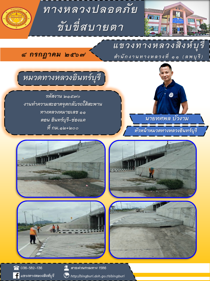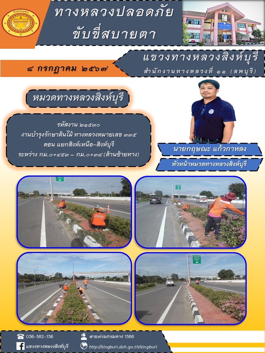 ข้อมูลภาพกิจกรรม : ประชาสัมพันธ์ วันที่ 10 กรกฎาคม 2567 ผลการปฏิบัติงาน ตั้งแต่วันที่ 1 - 5 กรกฎาคม 2567 แขวงทางหลวงสิงห์บุรี