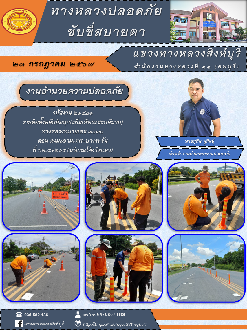 ประชาสัมพันธ์ วันที่ 25 กรกฎาคม 2567 ผลการปฏิบัติงาน ตั้งแต่วันที่ 15 - 19 กรกฎาคม 2567 แขวงทางหลวงสิงห์บุรี