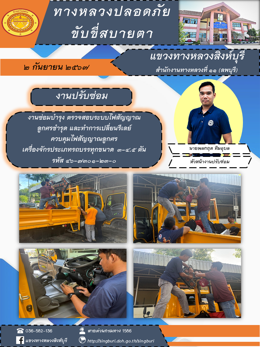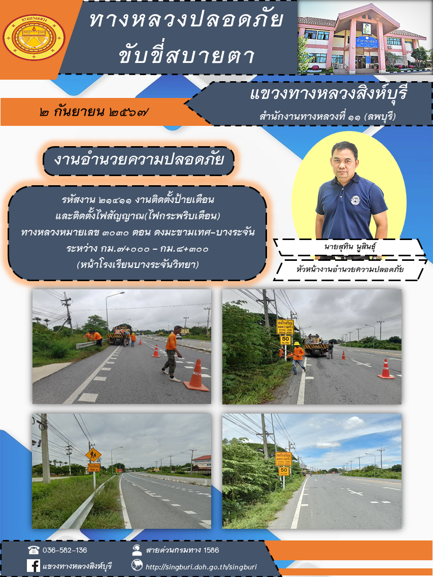 ??ประชาสัมพันธ์ วันจันทร์ที่ 2 กันยายน 2567 ผลการปฏิบัติงาน ตั้งแต่วันที่ 26-30 สิงหาคม 2567 แขวงทางหลวงสิงห์บุรี