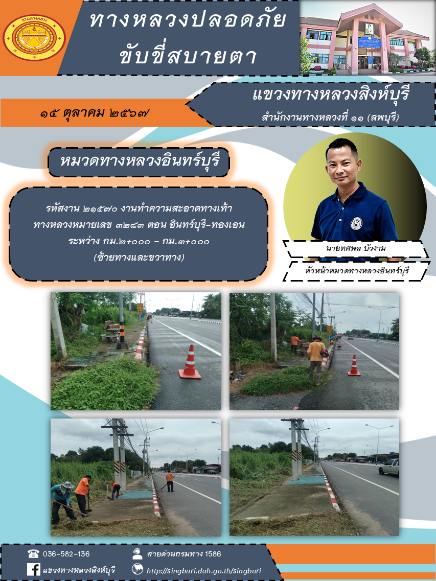 ข้อมูลภาพกิจกรรม : ผลการปฏิบัติงาน ตั้งแต่วันที่ 7 - 11 ตุลาคม 2567 แขวงทางหลวงสิงห์บุรี