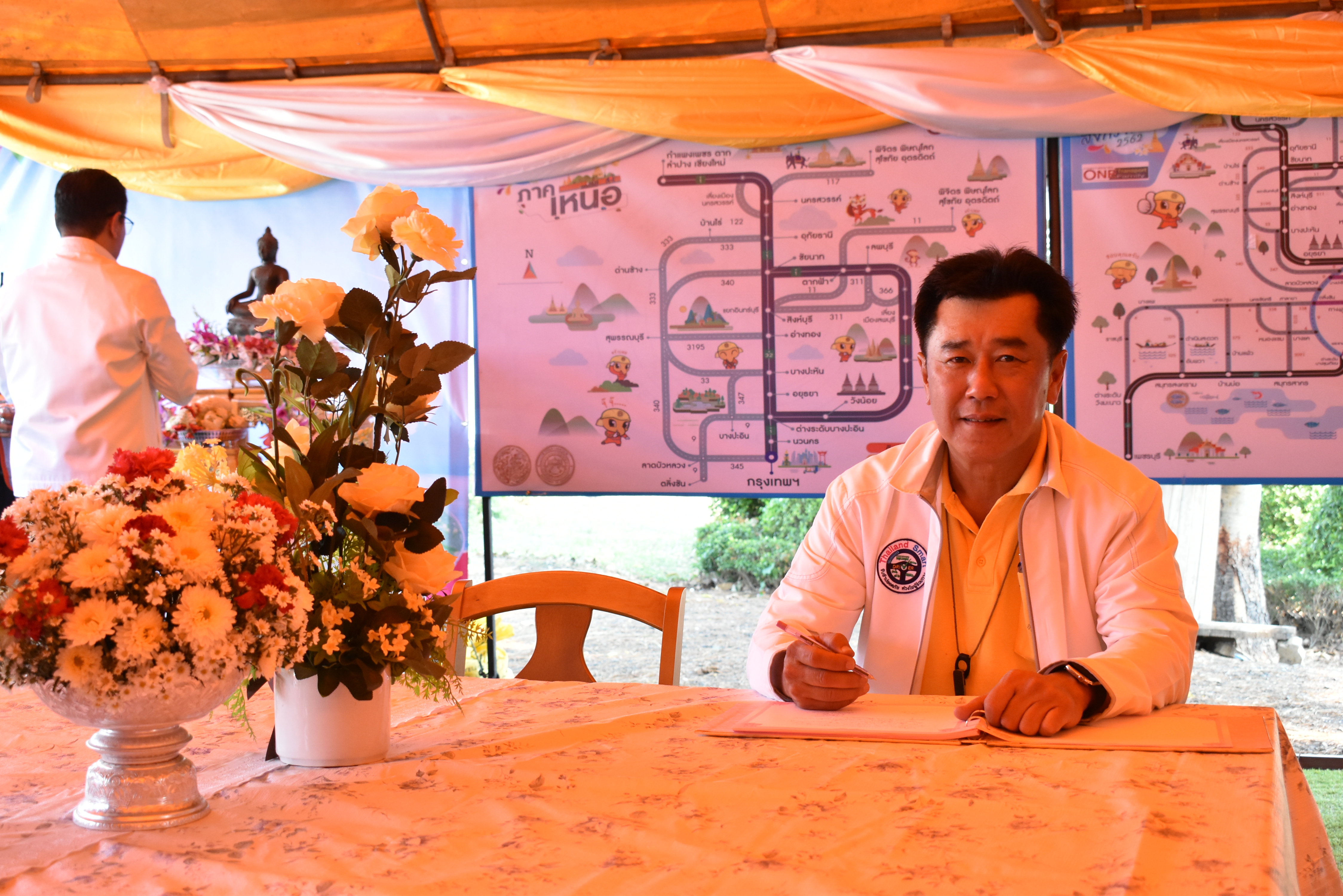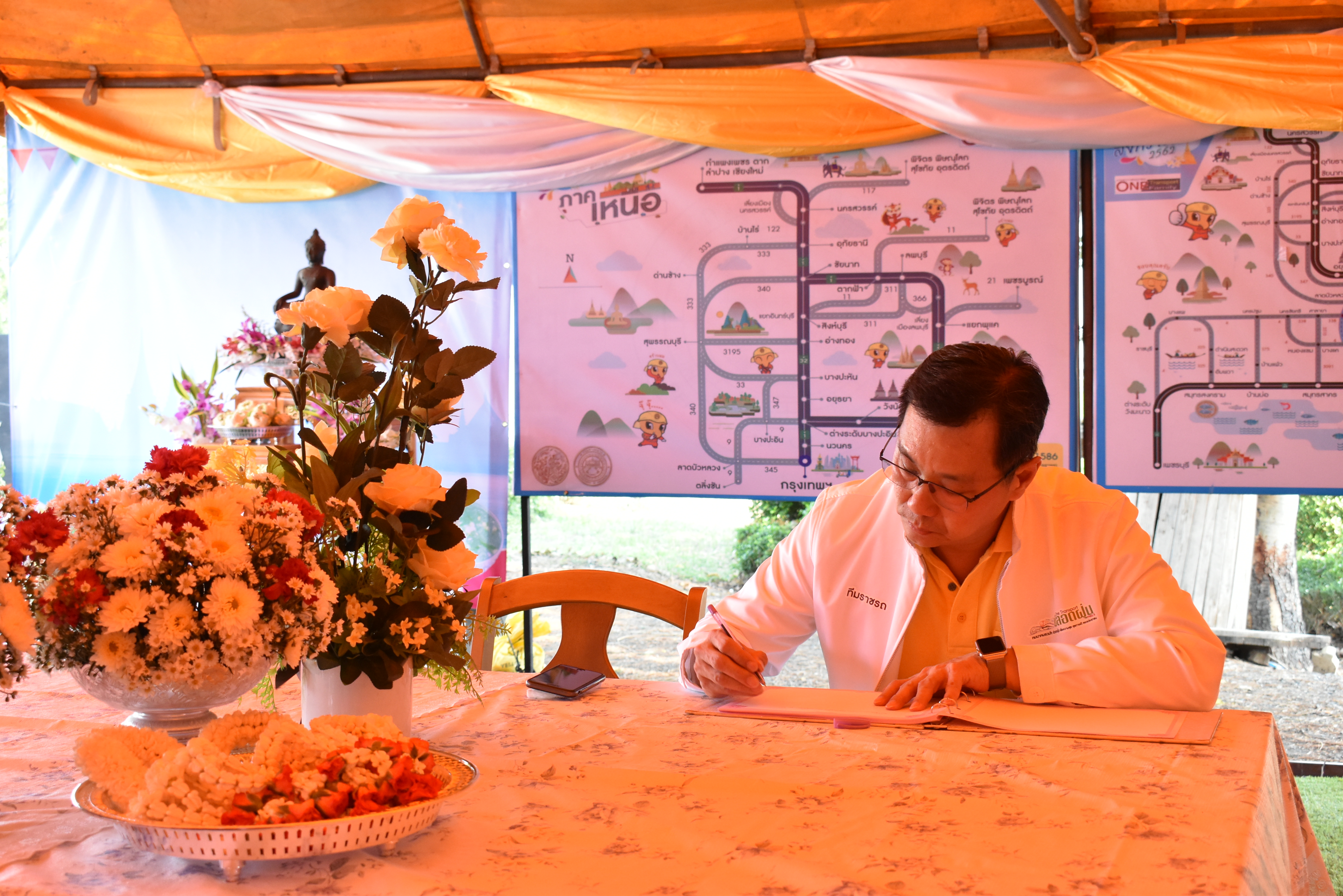 ณ เต็นท์บริการประชาชน บนทางหลวงหมายเลข 32 (ฝั่งขาออก กทม.) ที่ กม.103+200
