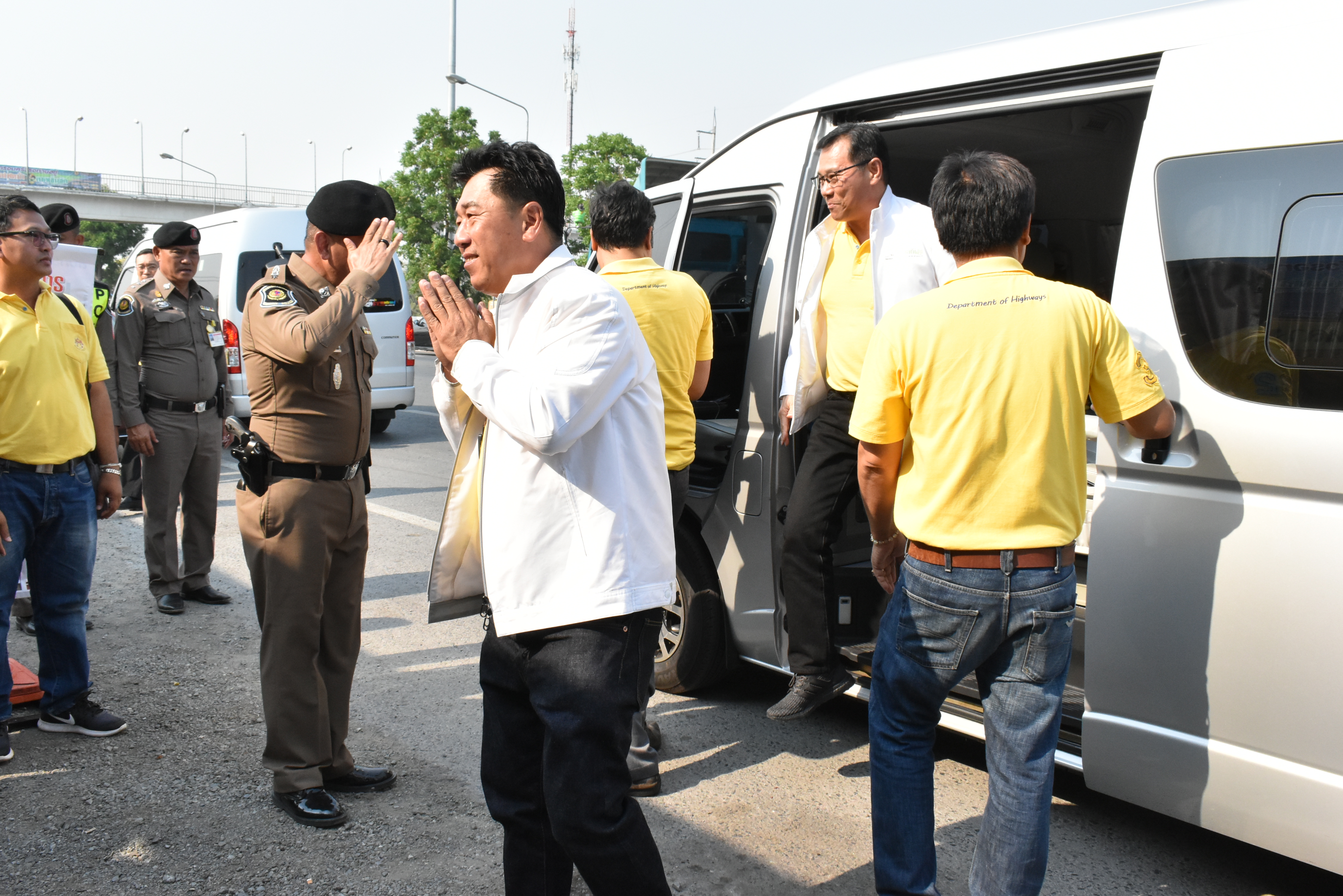 ที่เดินทางมาตรวจเยี่ยมจุดบริการทั่วไทยของแขวงทางหลวงสิงห์บุรี เพื่อเป็นขวัญกำลังใจแก่ผู้ปฏิบัติงานอำนวยความสะดวกและปลอดภัย ในช่วงเทศกาลสงกรานต์ 2562