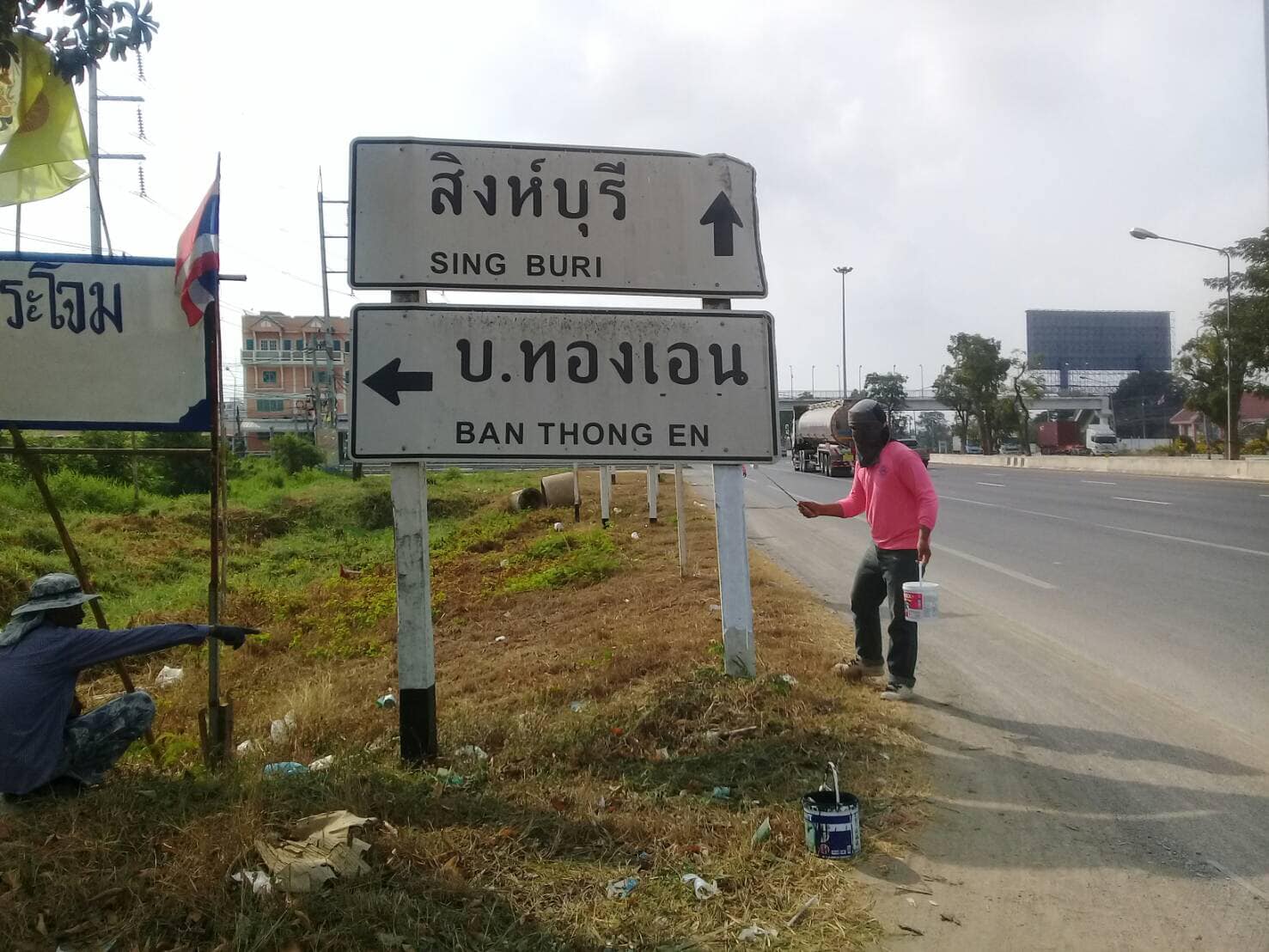 ดำเนินการทำความสะอาดและทาสีป้ายจราจร ทางหลวงหมายเลข 32