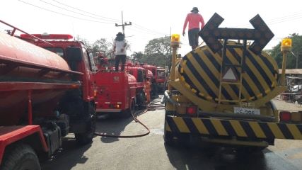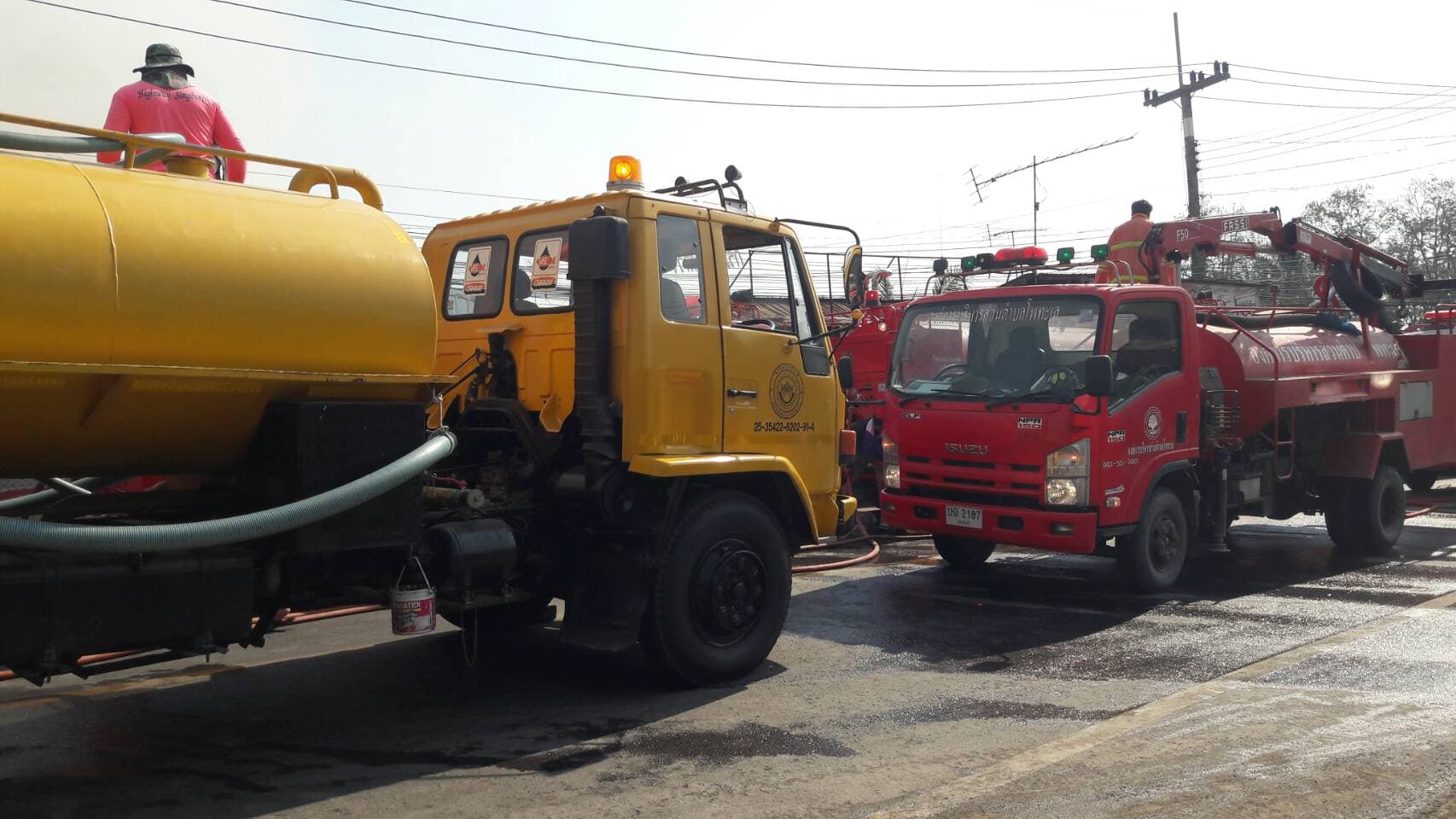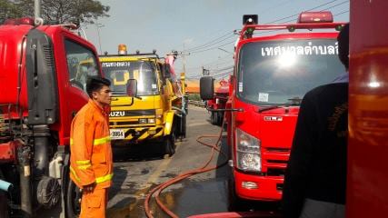 ดำเนินการนำรถน้ำเข้าช่วยเหลือชาวบ้านดับเพลิง เหตุเพลิงไหม้ที่ตลาดชัณสูตร จ.สิงห์บุรี