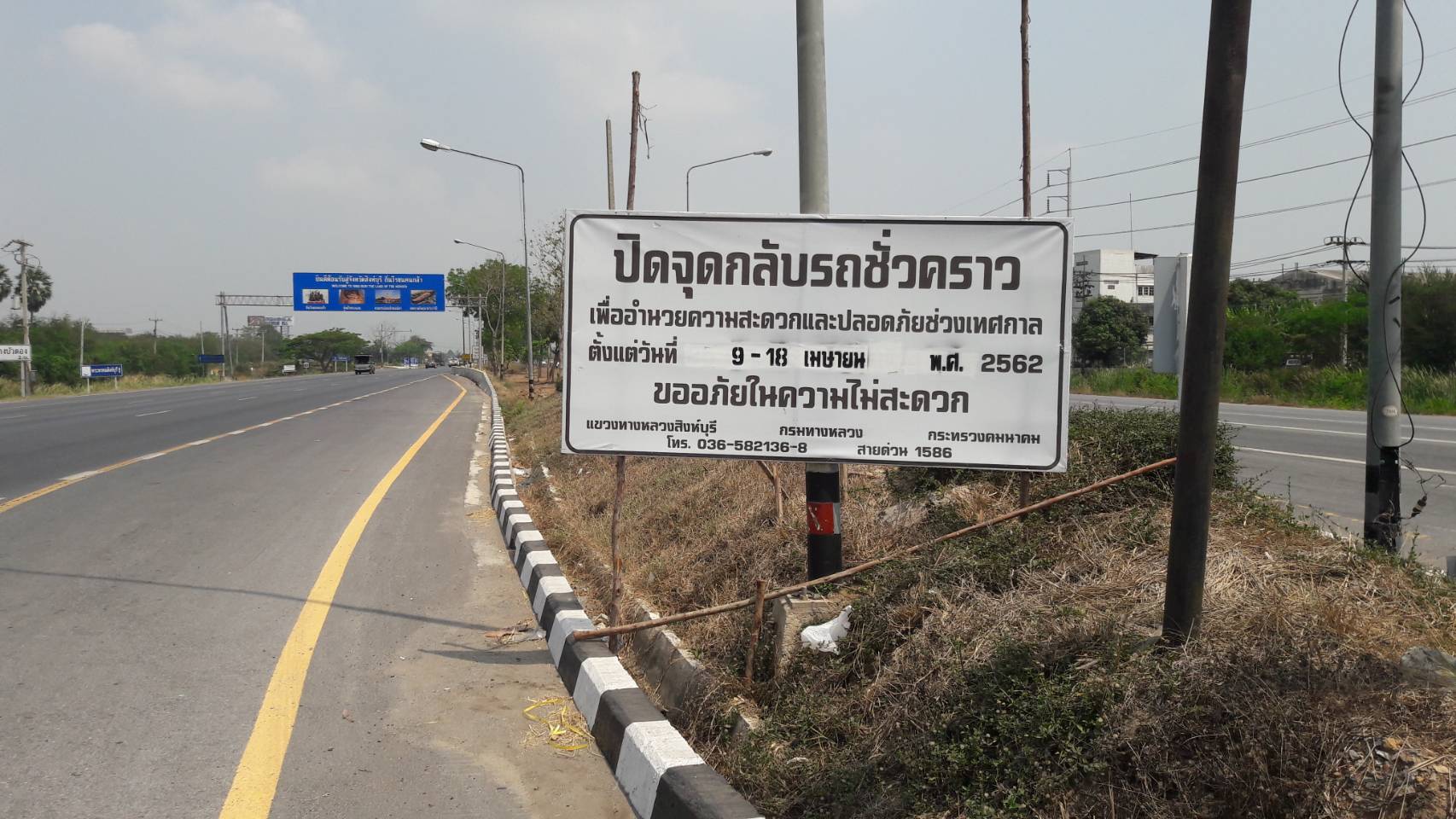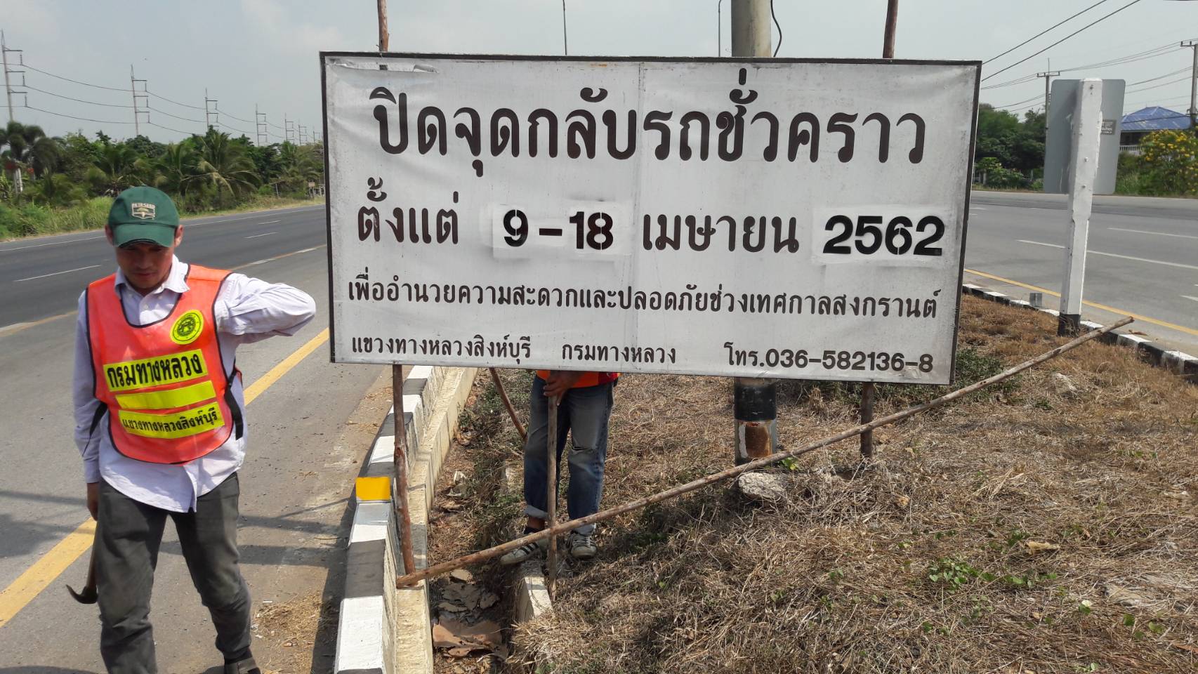 ติดตั้งป้ายประชาสัมพันธ์ ปิดจุดกลับรถชั่วคราว บนทางหลวงหมายเลข 32