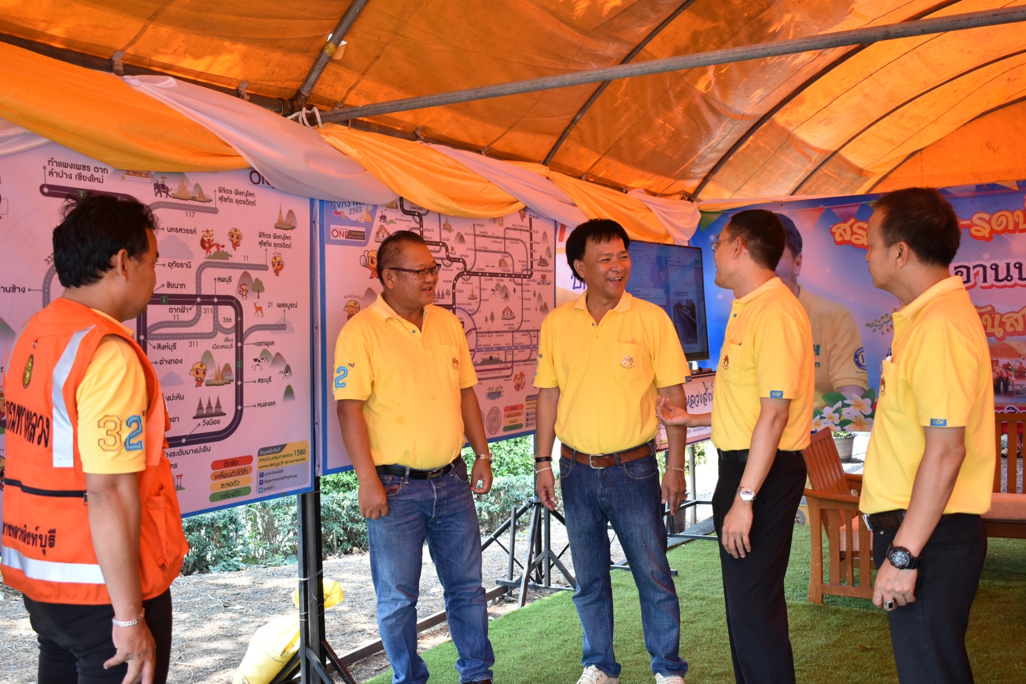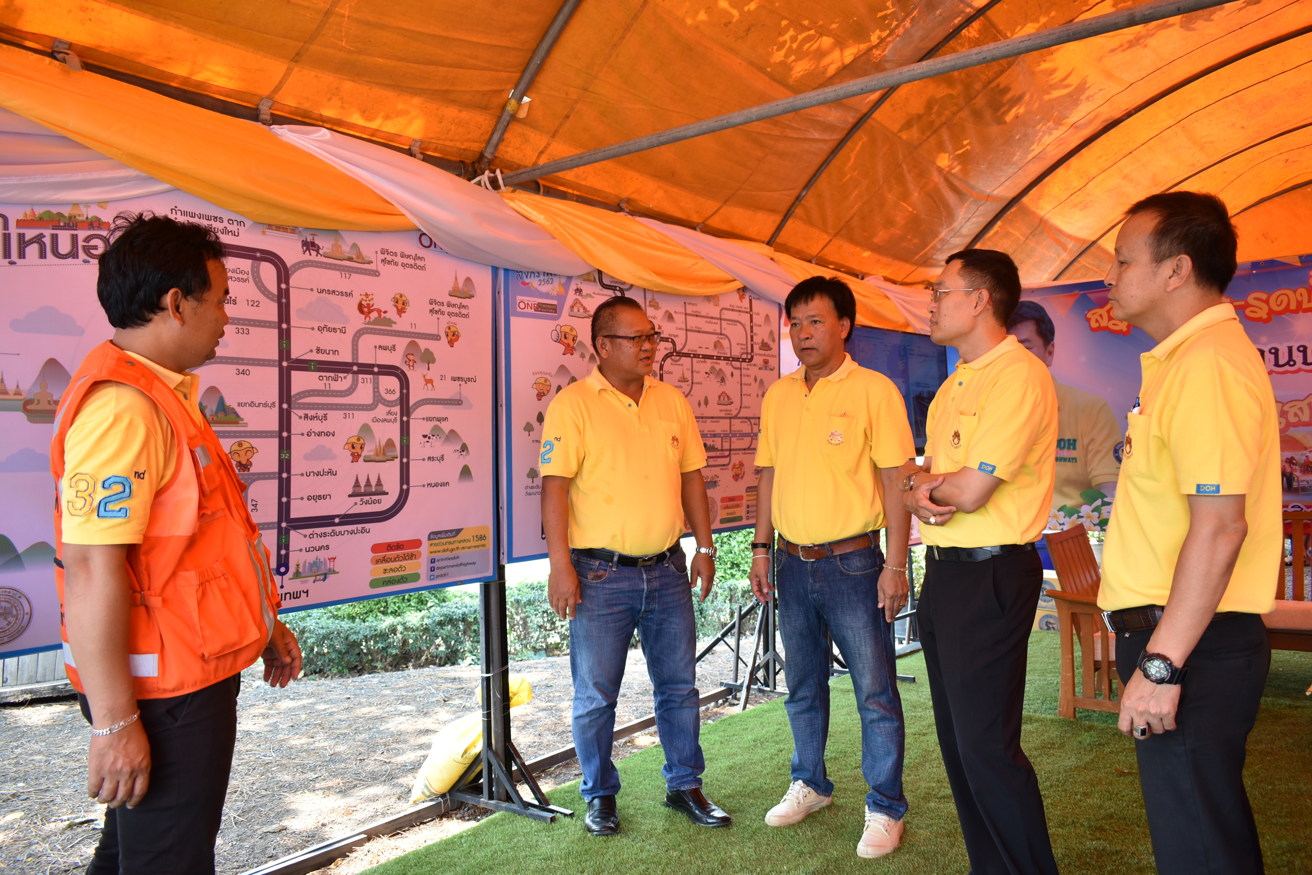 ณ เต็นท์บริการประชาชน บนทางหลวงหมายเลข 32 (ฝั่งขาออก กทม.) ที่ กม.103+200 บริเวณหน้าแขวงทางหลวงสิงห์บุรี